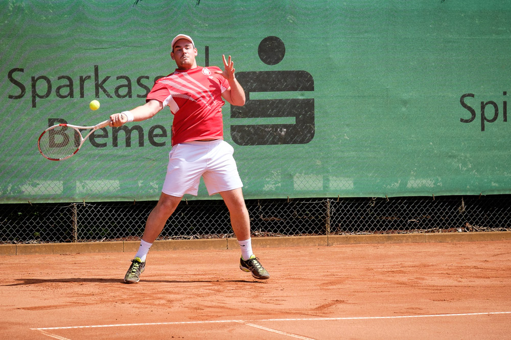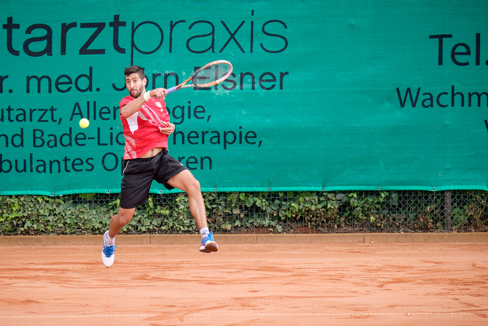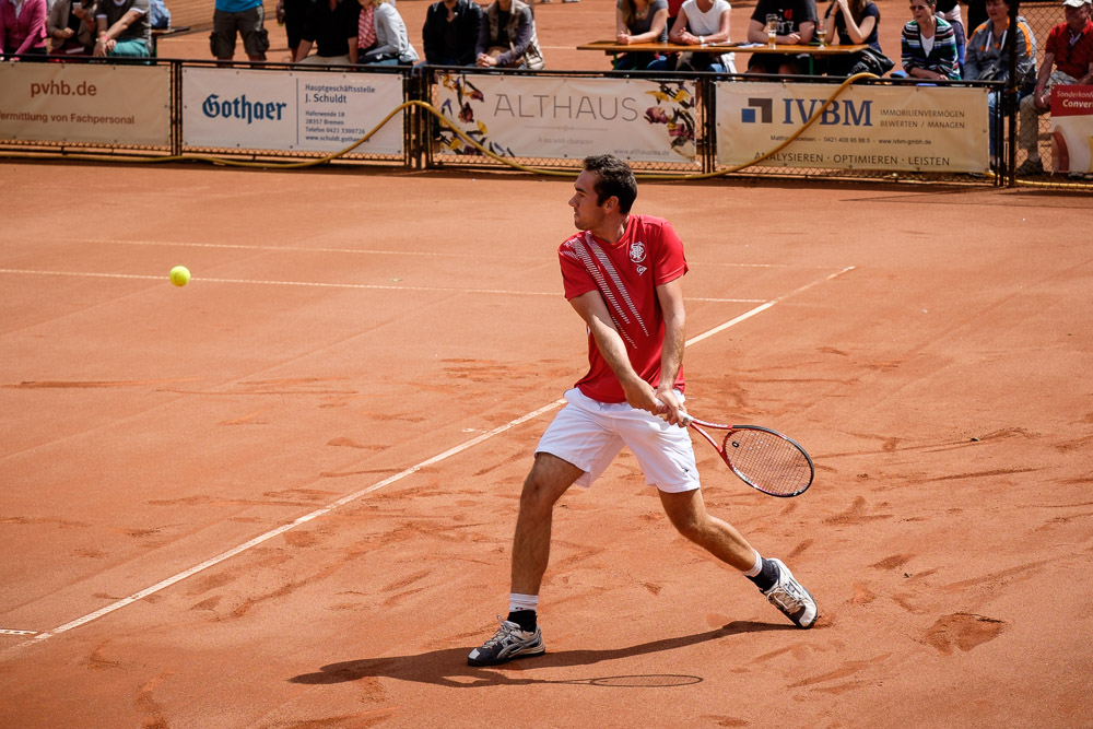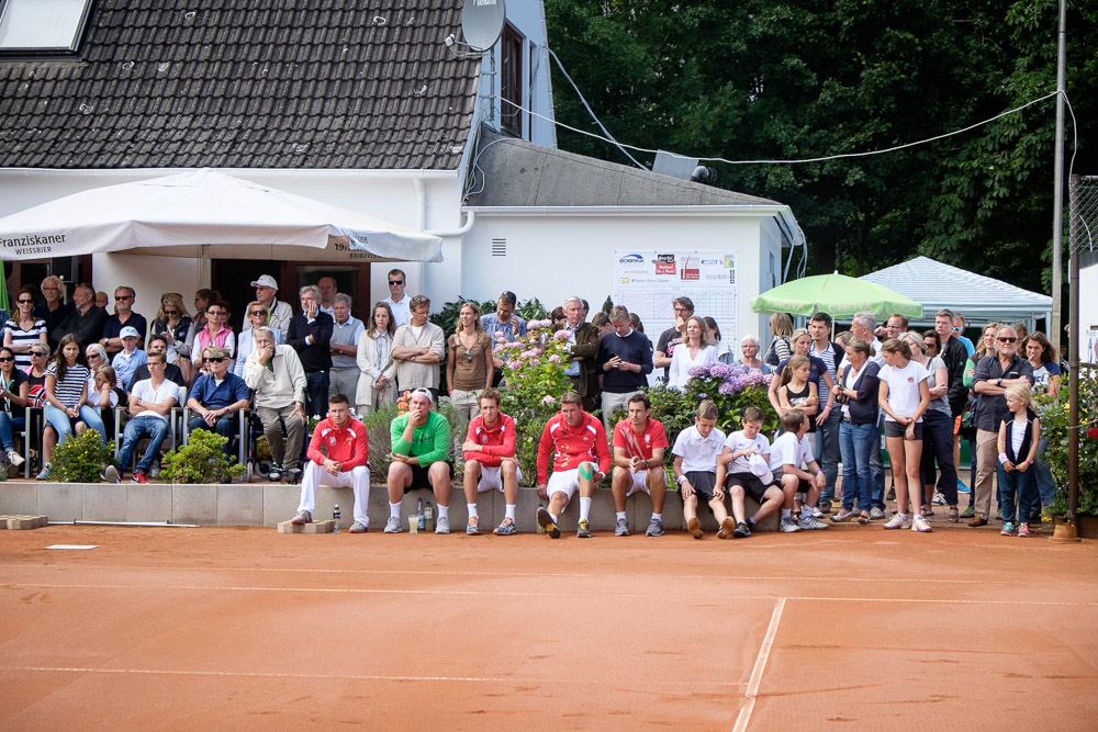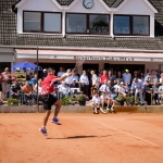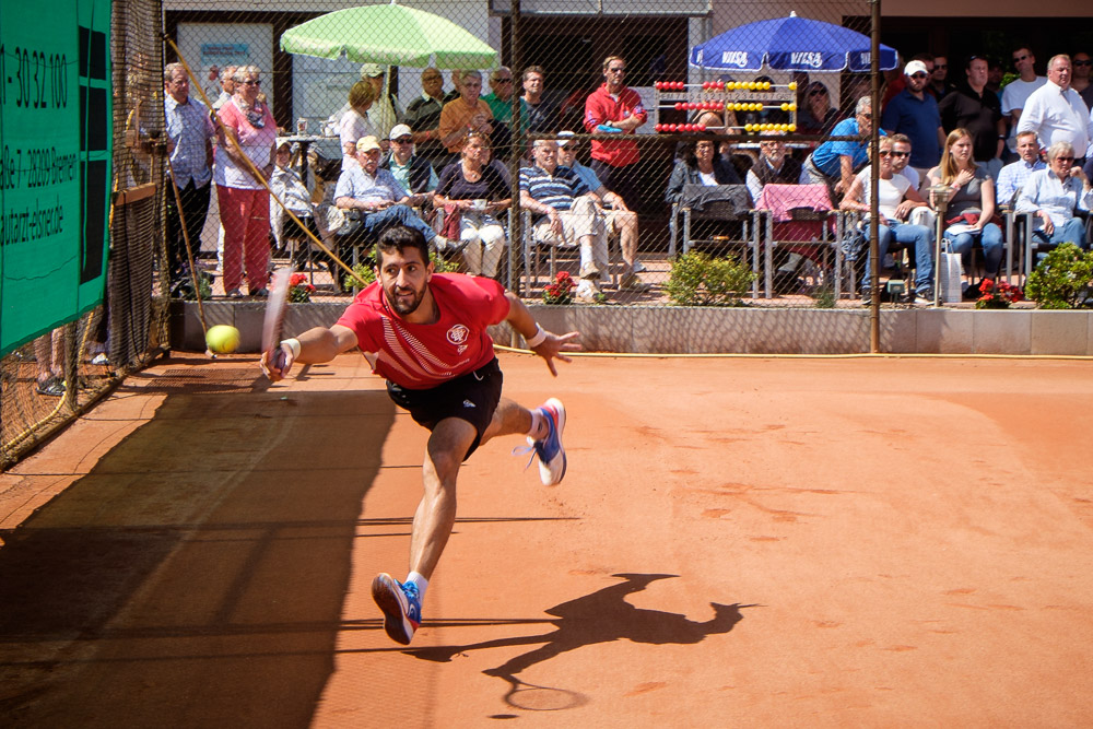 Gegen den aufschlagstarken Tschechen Jan Mertl ( ATP Nr. 201 ) blieb im entscheidenden Moment jedoch ein Volley an der Netzkante hängen, sodass das Ergebnis von 3:6, 7:5 und 9:11 leider das 2:4 nach den Einzeln bedeutete. Dennoch gab es Sandplatztennis vom allerfeinsten für die ca. 550 Zuschauer zu bestaunen.