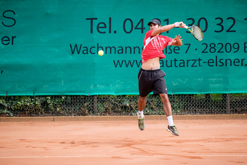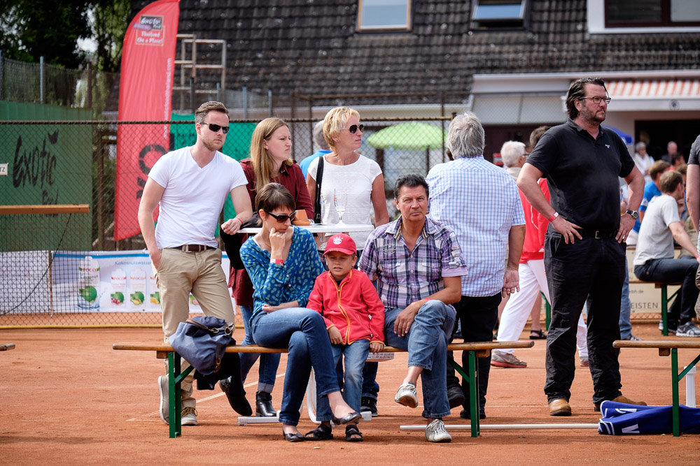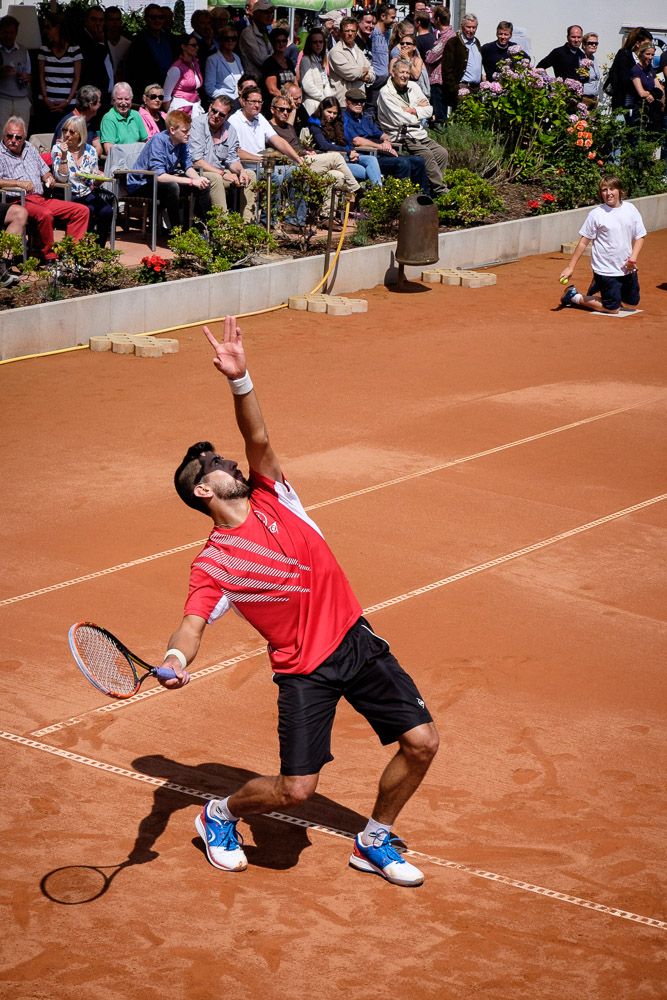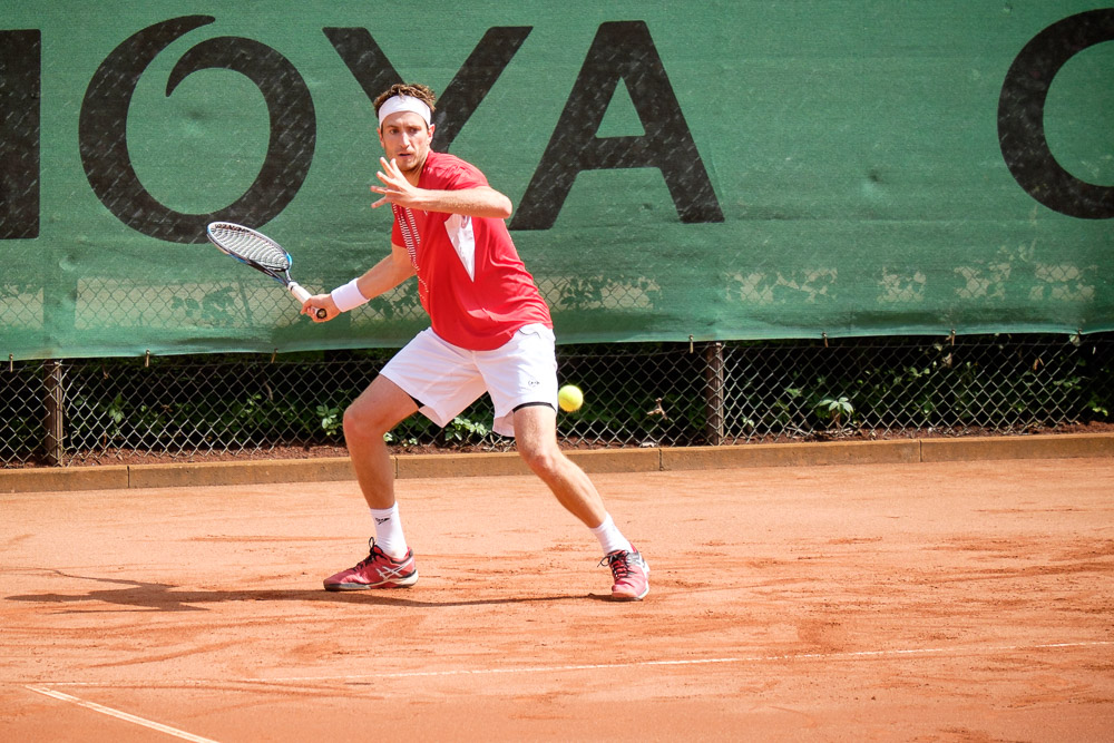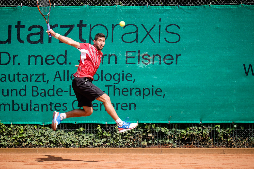 Gegen den aufschlagstarken Tschechen Jan Mertl ( ATP Nr. 201 ) blieb im entscheidenden Moment jedoch ein Volley an der Netzkante hängen, sodass das Ergebnis von 3:6, 7:5 und 9:11 leider das 2:4 nach den Einzeln bedeutete. Dennoch gab es Sandplatztennis vom allerfeinsten für die ca. 550 Zuschauer zu bestaunen.