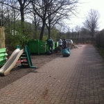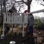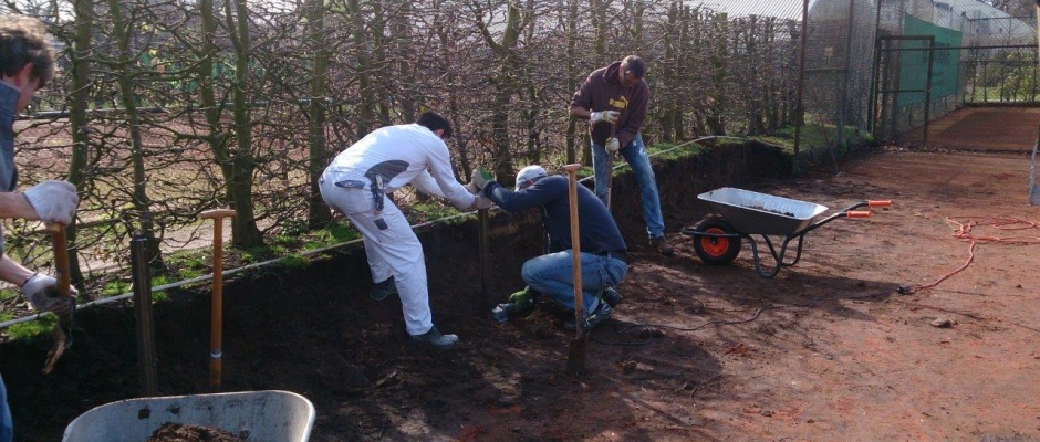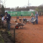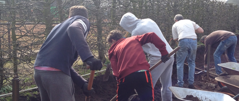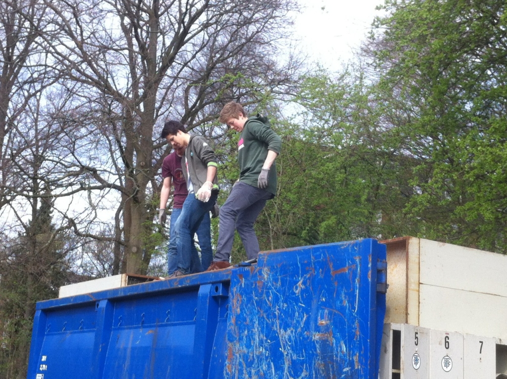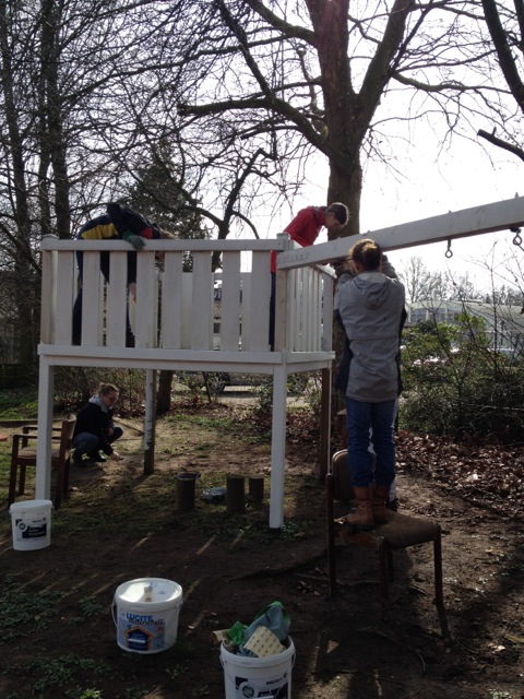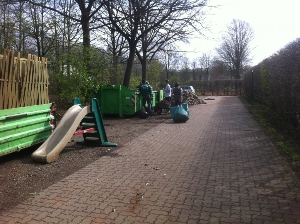 So wurde die Abstützung der Hecke inkl. neuem Zaun an Platz 4 komplett neu gebaut. Dafür mussten mehrere Tonnen Erde und Steine bewegt werden! Außerdem wurde ein großer Container mit Schrott und Müll aus einigen Jahren gefüllt, das Spielgerüst neu gestrichen, Laub geharkt und noch vieles mehr.