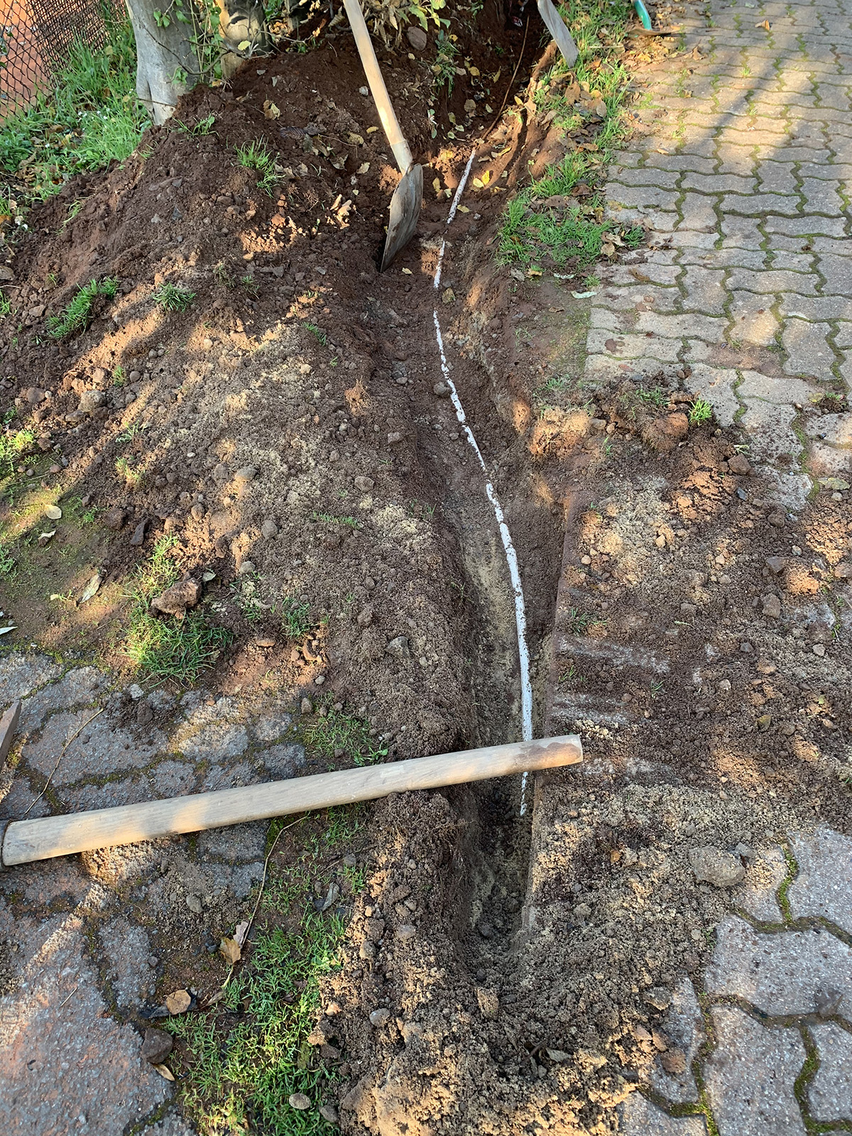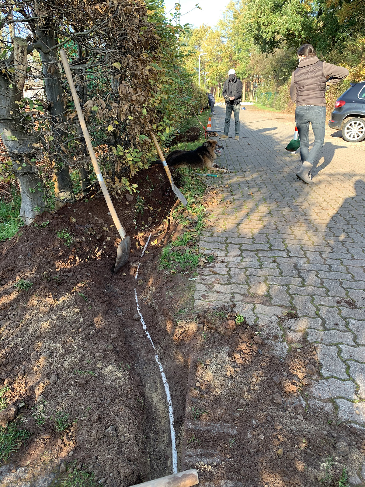Die eigentliche Aufgabe, die Verlegung von Kabel und Leerrohr zur Steuerung der neuen Bewässerungsanlage, wurde natürlich nebenbei auch souverän erledigt!