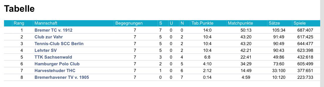 Bremen. Sportlich waren die Tennisspieler des Bremer TC von 1912 in dieser Saison eine Klasse für sich. Einen Gegner gab es dann aber doch, der am letzten Spieltag demonstrierte, dass er selbst für das Ensemble aus Schwachhausen eine Nummer zu groß ist. Eine 30-minütige Regenunterbrechung während der Einzel im Auswärtsspiel beim TC SCC Berlin hatte aus Sicht der zahlreichen mitgereisten 1912-Fans aber zumindest den Vorteil, dass man sich zwischenzeitlich noch mal mit Getränken versorgen konnte, um kurz darauf erst die vorentscheidende 5:1-Führung und später den 5:4-Sieg sowie den direkten Wiederaufstieg in die Zweite Liga zu begießen. Sieben Spieltage, sieben Siege, 14:0 Punkte – und in der Abschlusstabelle satte vier Zähler Vorsprung auf das punktgleiche Verfolgertrio Club zur Vahr, Berlin und Lehrte.