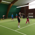 Kolja hatte sich ein sehr abwechslungsreiches Programm ausgedacht: Eine sehr kurzweilige Abfolge von Übungen für Ausdauer und Koordination mit und ohne Ball und Schläger. Anstrengend, aber für alle Beteiligten immer machbar. So soll es sein!