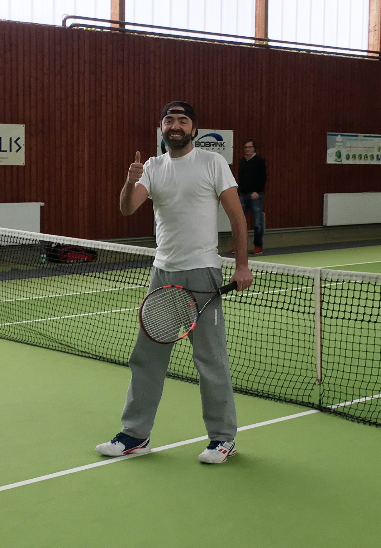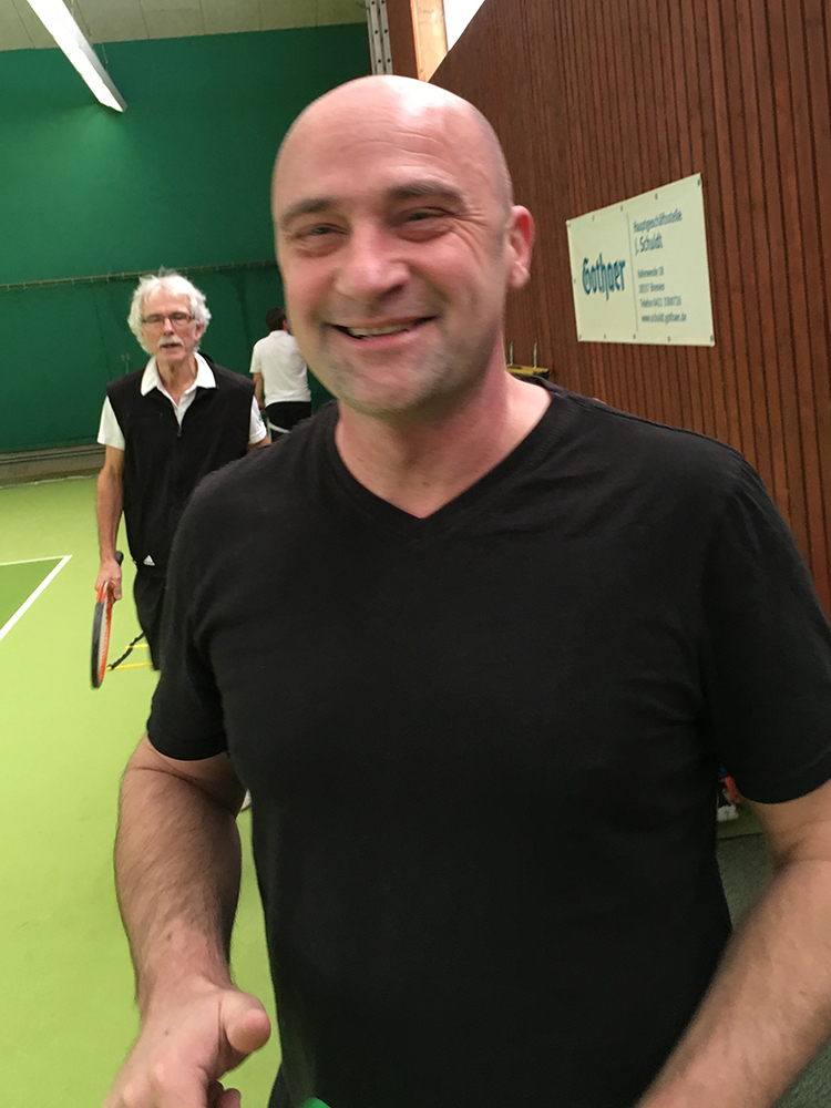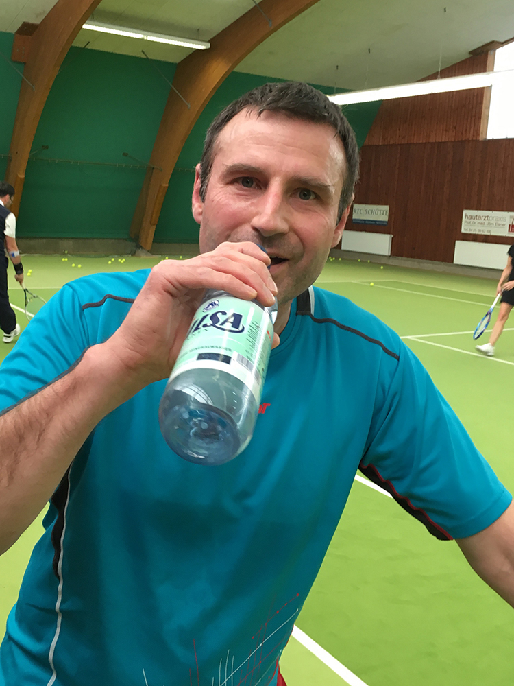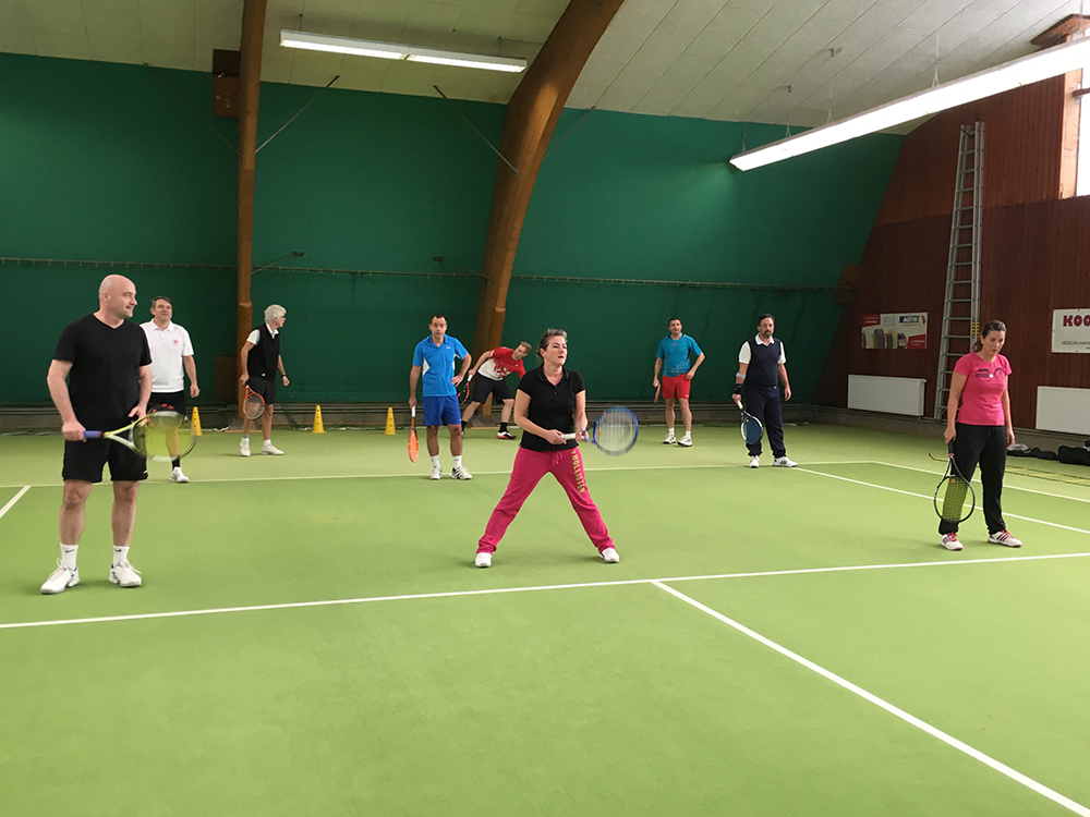 Kolja hatte sich ein sehr abwechslungsreiches Programm ausgedacht: Eine sehr kurzweilige Abfolge von Übungen für Ausdauer und Koordination mit und ohne Ball und Schläger. Anstrengend, aber für alle Beteiligten immer machbar. So soll es sein!