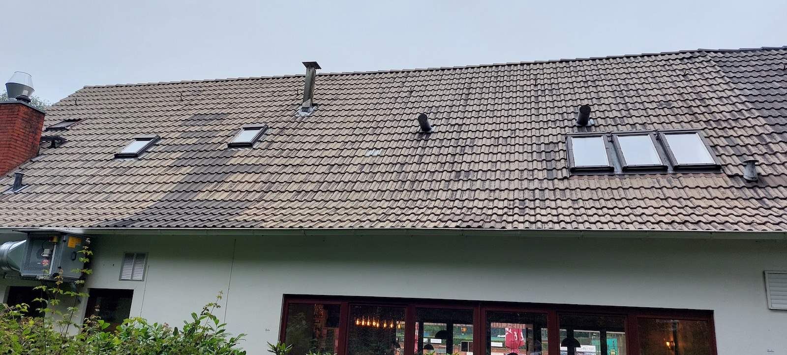 Die eine Seite des Dachs unseres Clubhauses erstrahlt in neuem Glanz! Durch eine Fachfirma wurde nach einer sorgfältigen Reinigung eine „Nano“-Versiegelung aufgetragen.