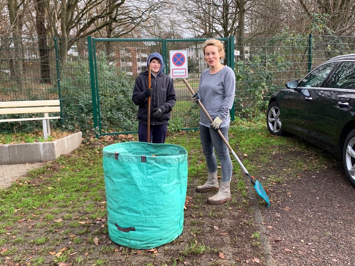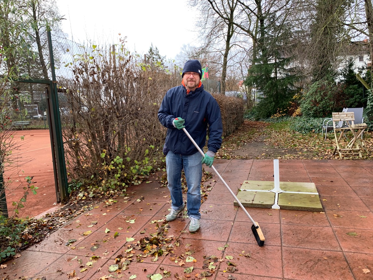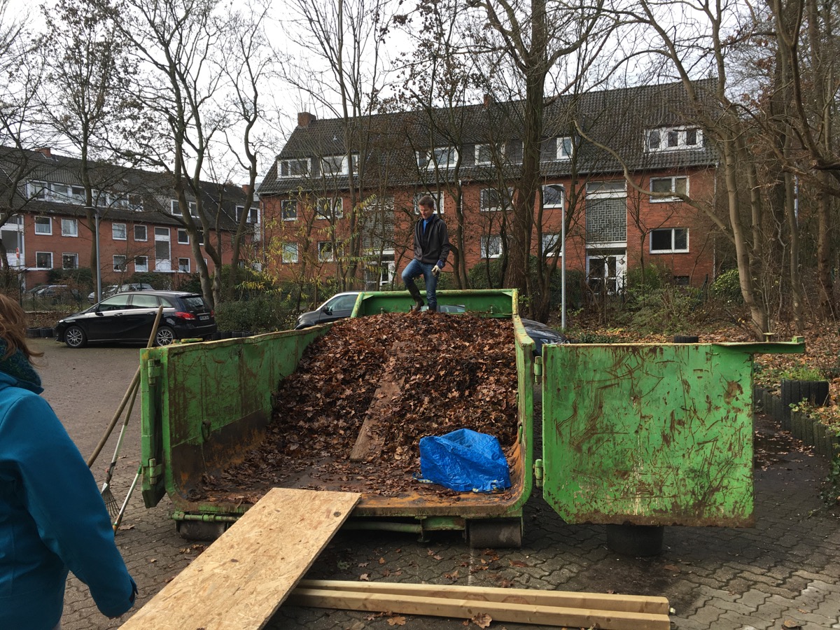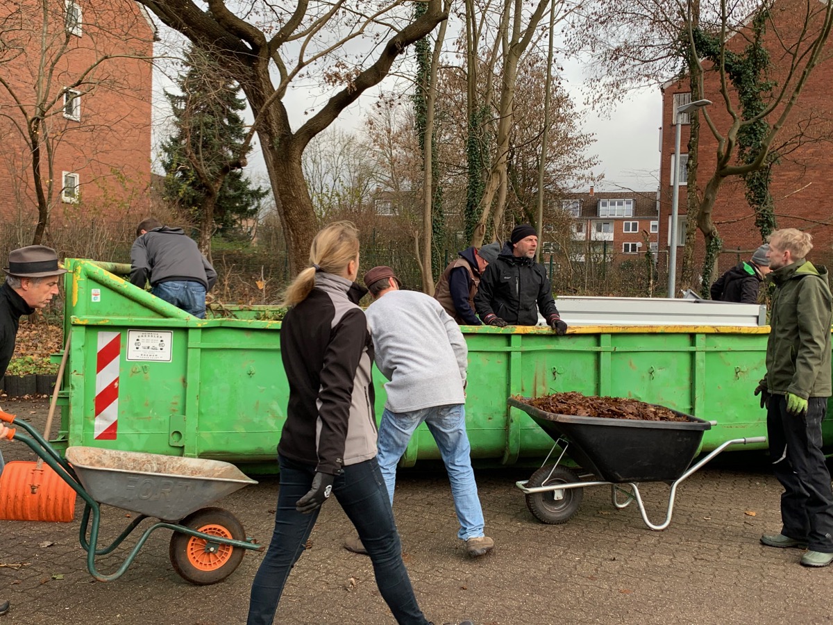 Beim diesjährigen Laubharken konnte mit der Beteiligung von knapp 20 fleißigen Helfern die gesamte Anlage vom Laub befreit werden. Innerhalb von knapp drei Stunden war der große Container randvoll mit Laub gefüllt.
