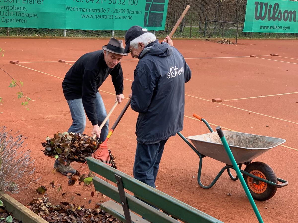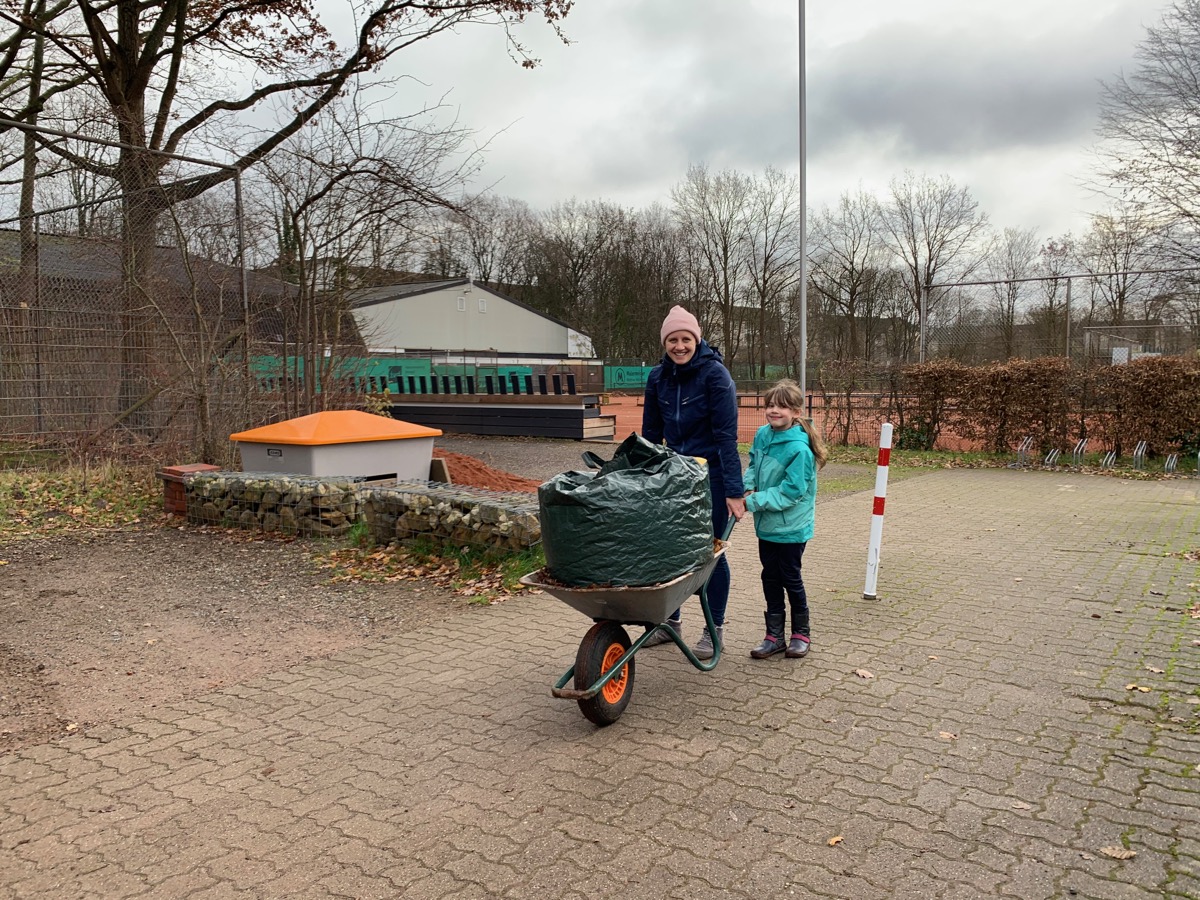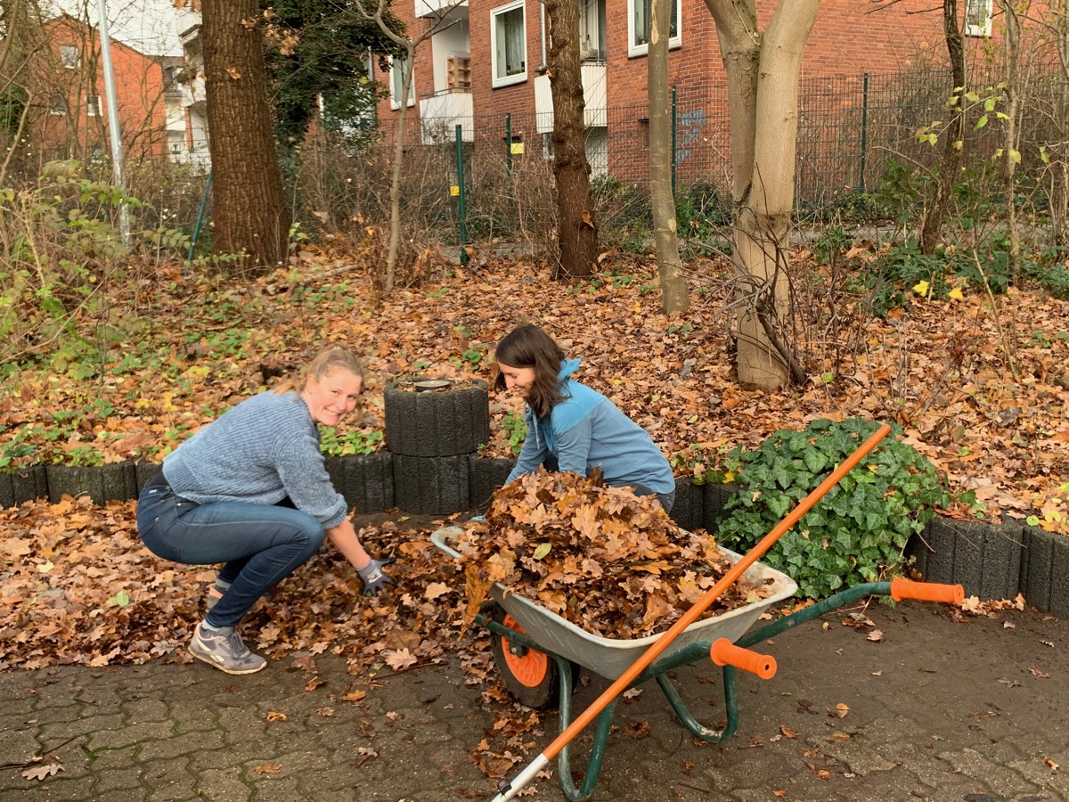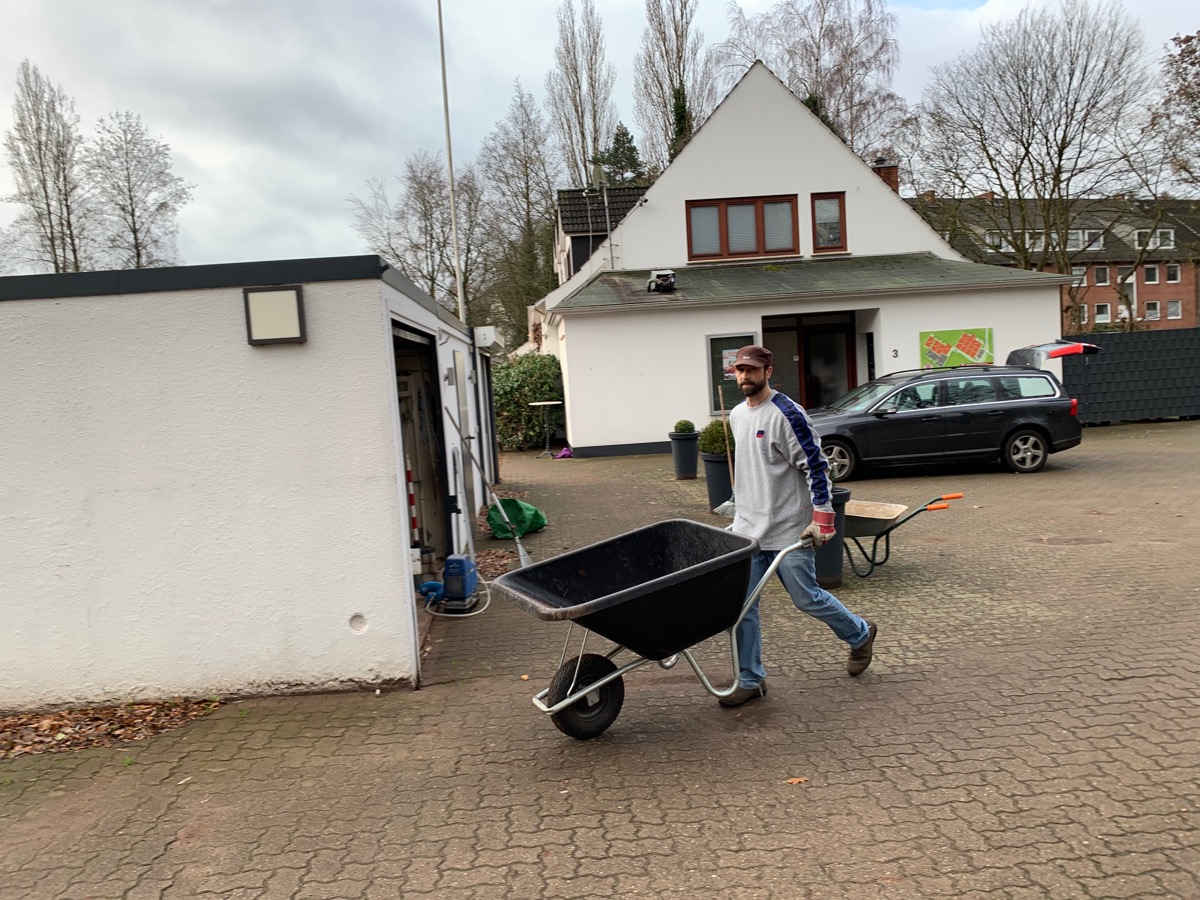 Beim diesjährigen Laubharken konnte mit der Beteiligung von knapp 20 fleißigen Helfern die gesamte Anlage vom Laub befreit werden. Innerhalb von knapp drei Stunden war der große Container randvoll mit Laub gefüllt.