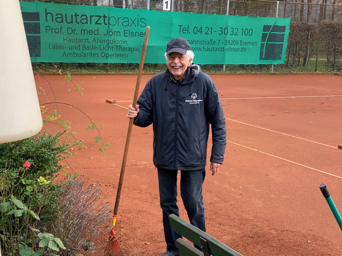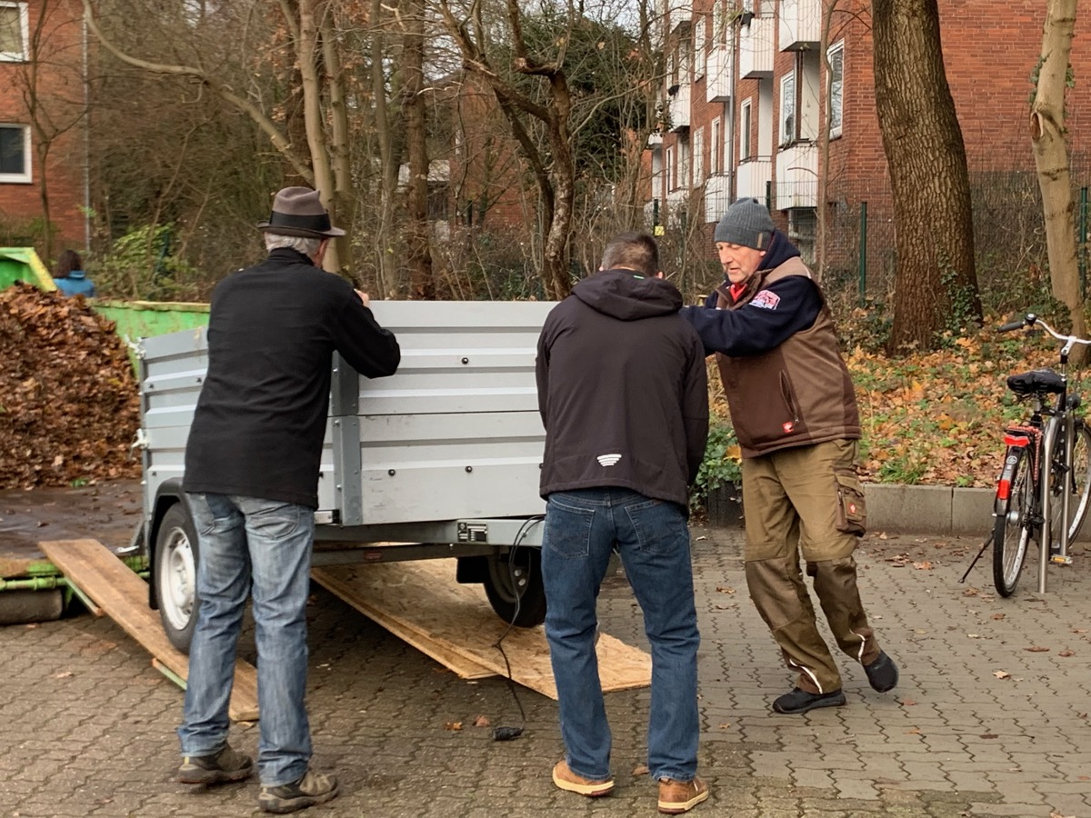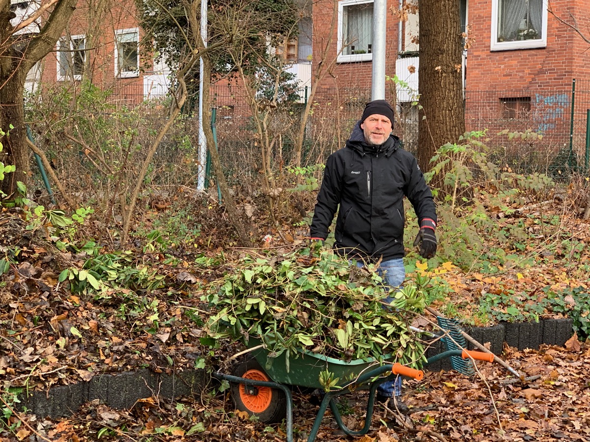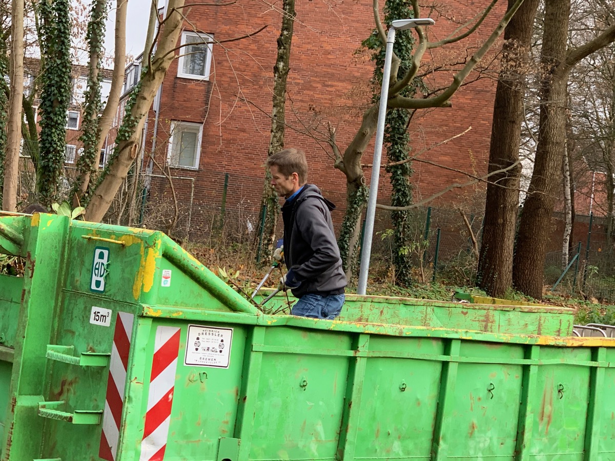 Beim diesjährigen Laubharken konnte mit der Beteiligung von knapp 20 fleißigen Helfern die gesamte Anlage vom Laub befreit werden. Innerhalb von knapp drei Stunden war der große Container randvoll mit Laub gefüllt.