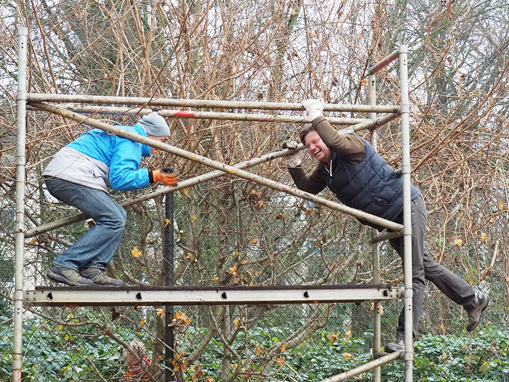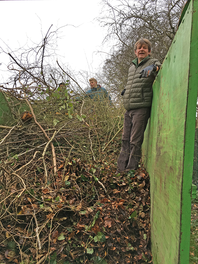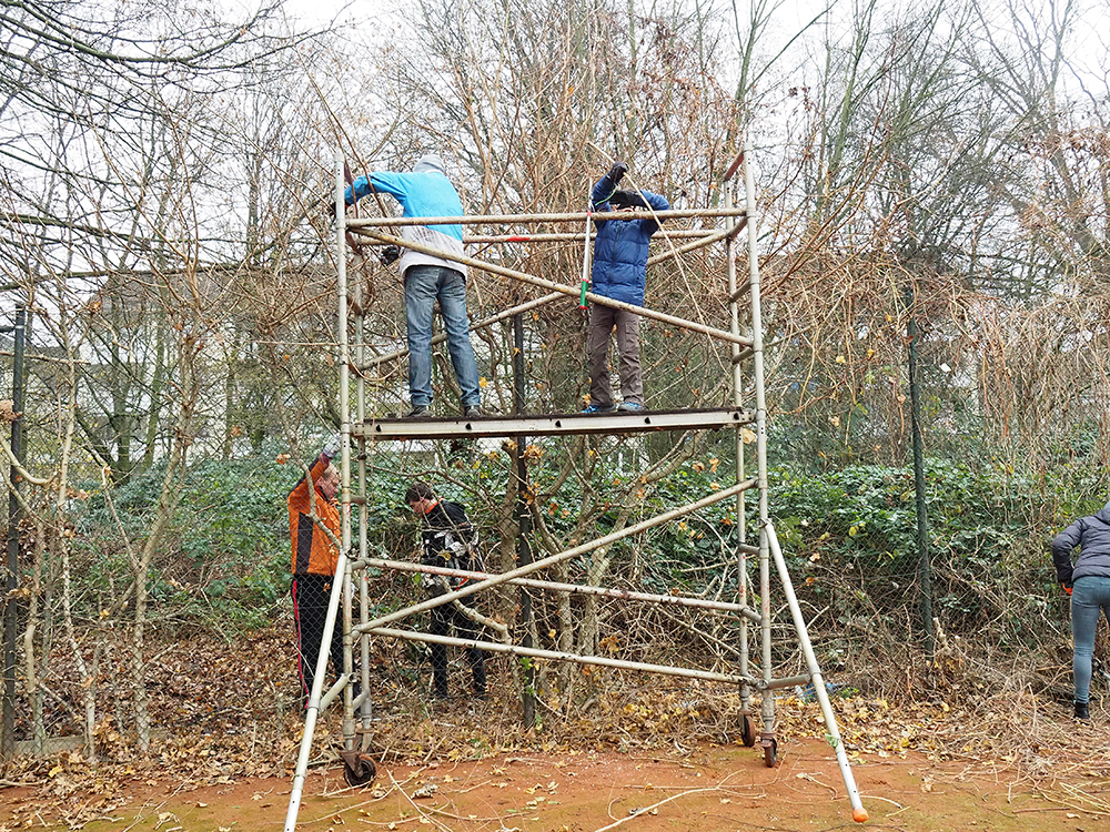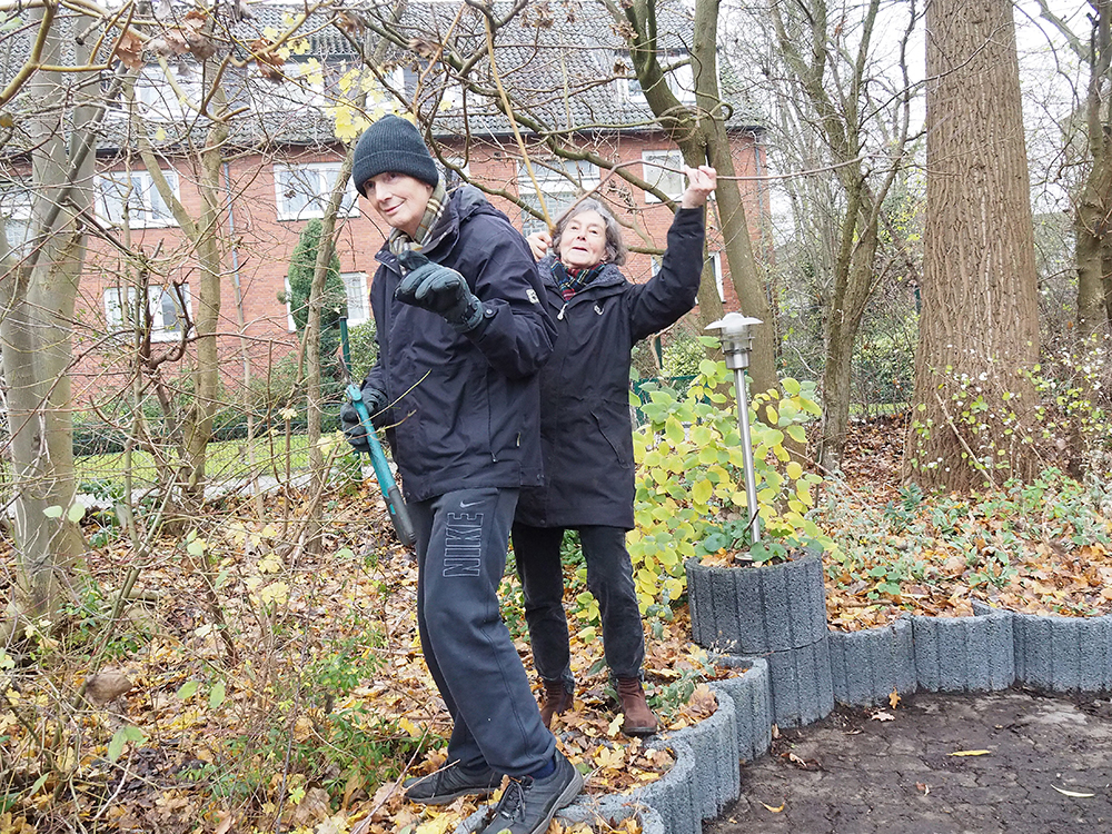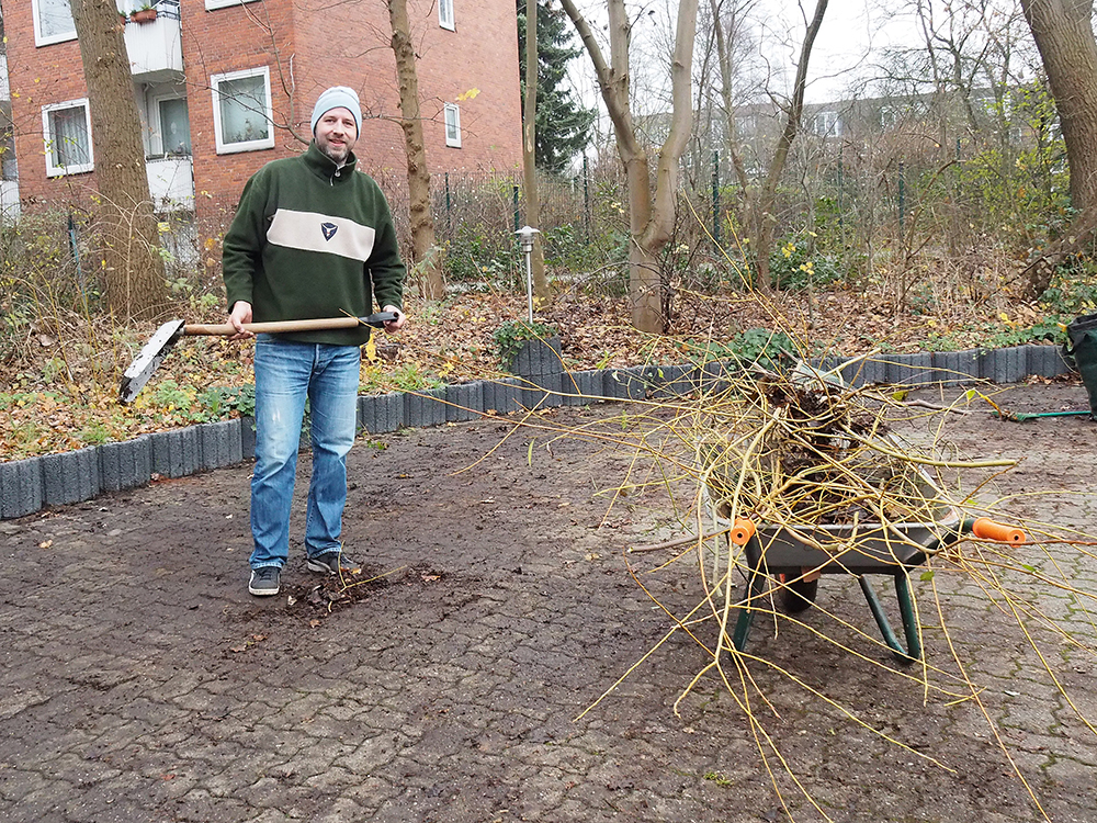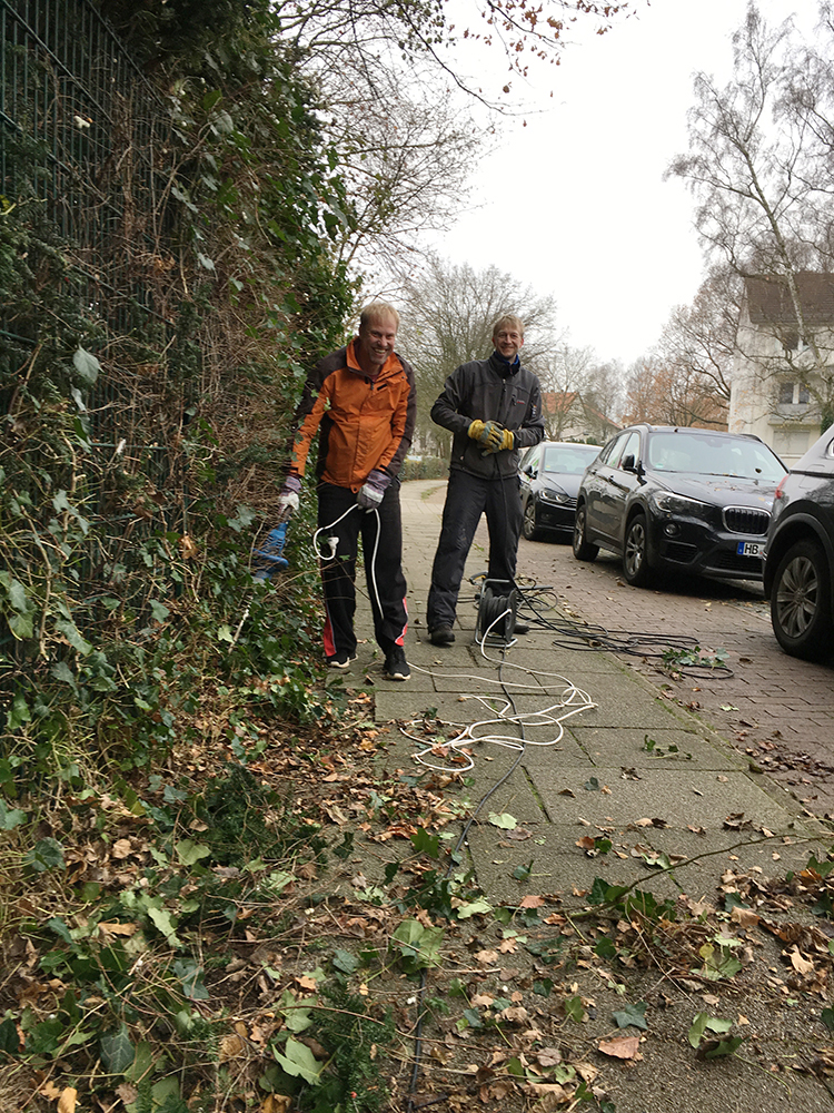 So wurde z.B. mit großen Aufwand die schon länger wuchernde Hecke an Platz 10 entfernt und der Bewuchs am Zaun zur Biermannstraße auf ein vernünftiges Maß reduziert.