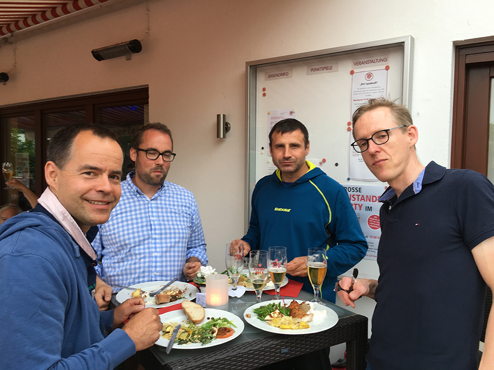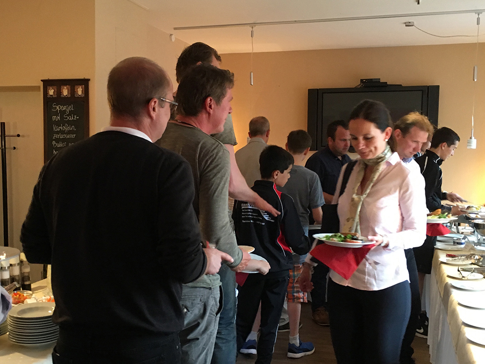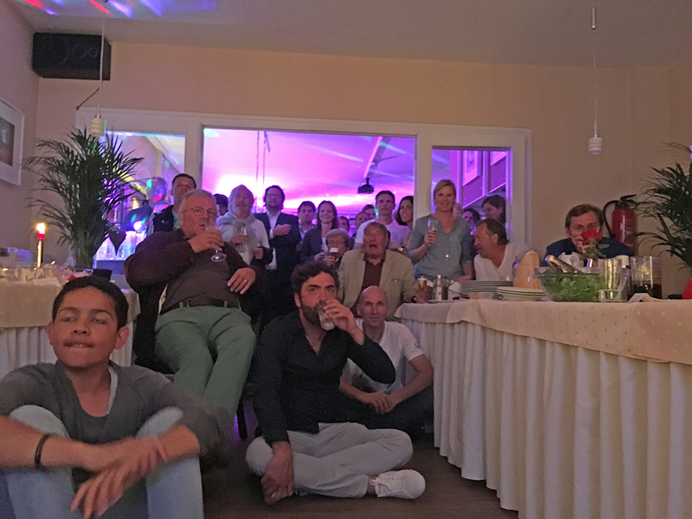 Es gab ein sehr leckeres und reichhaltiges Buffet und außerdem mehr als ausreichende Mengen an Getränken. Neben vielen netten Gesprächen wurde nebenbei noch ein bisschen Fußball geguckt und später waren viele der Gäste auch auf der Tanzfläche zu finden.
