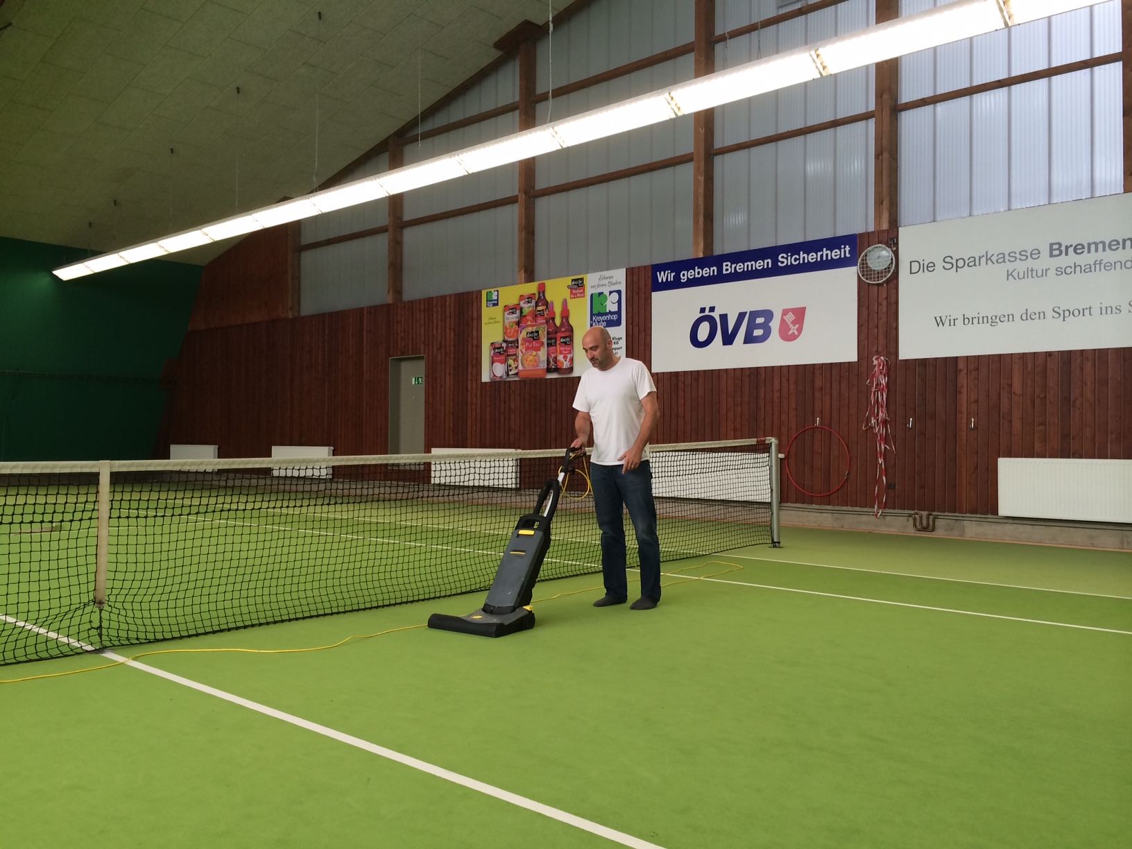 So wurden die Umkleiden und die Hallen einer sehr gewissenhaften Grundreinigung unterzogen. Außerdem wurden kaputte Linien ersetzt, so dass einem Start in die Hallensaion nichts mehr im Wege stehen sollte.