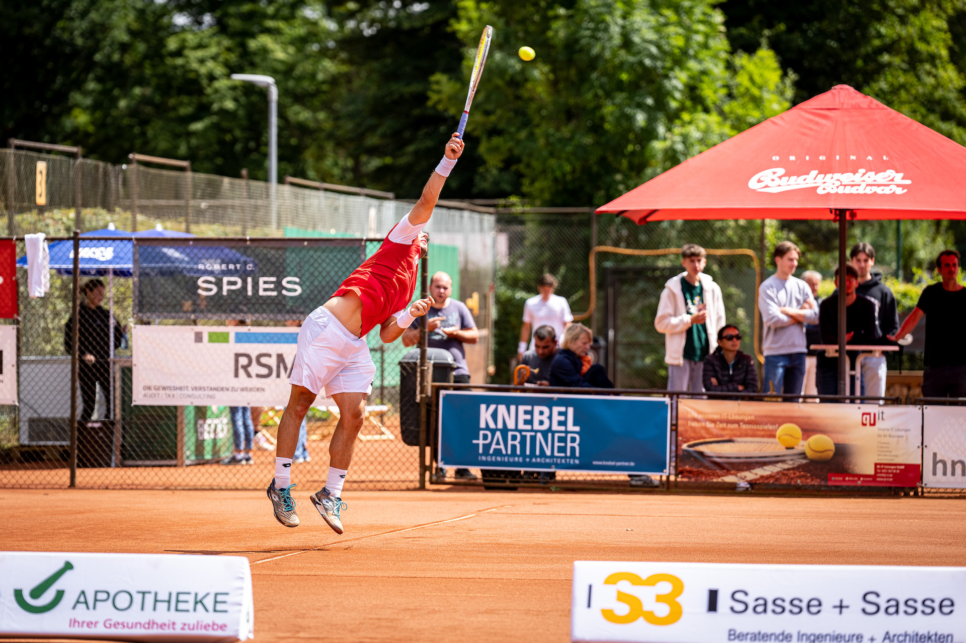 Am Freitag war das Team Hämmerling von TUS Sennelager zu Gast. Als Absteiger aus der 1. Bundesliga natürlich der Favorit. Tatsächlich war nach den ersten drei Einzeln beim Stand von 1:2 nur unser bärenstarker Bremer Lukas Rüpke erfolgreich. Während Pol Toledo Bague an 2 mit 2:6 und 1:6 sowie Alberto Barroso Campos an 4 mit 3:6 und 4:6 ihre Einzel verloren, setzte sich Lukas an 6 gegen Benedict Henning im Matchtiebreak mit 2:6, 7:6 und 10:6 durch.
