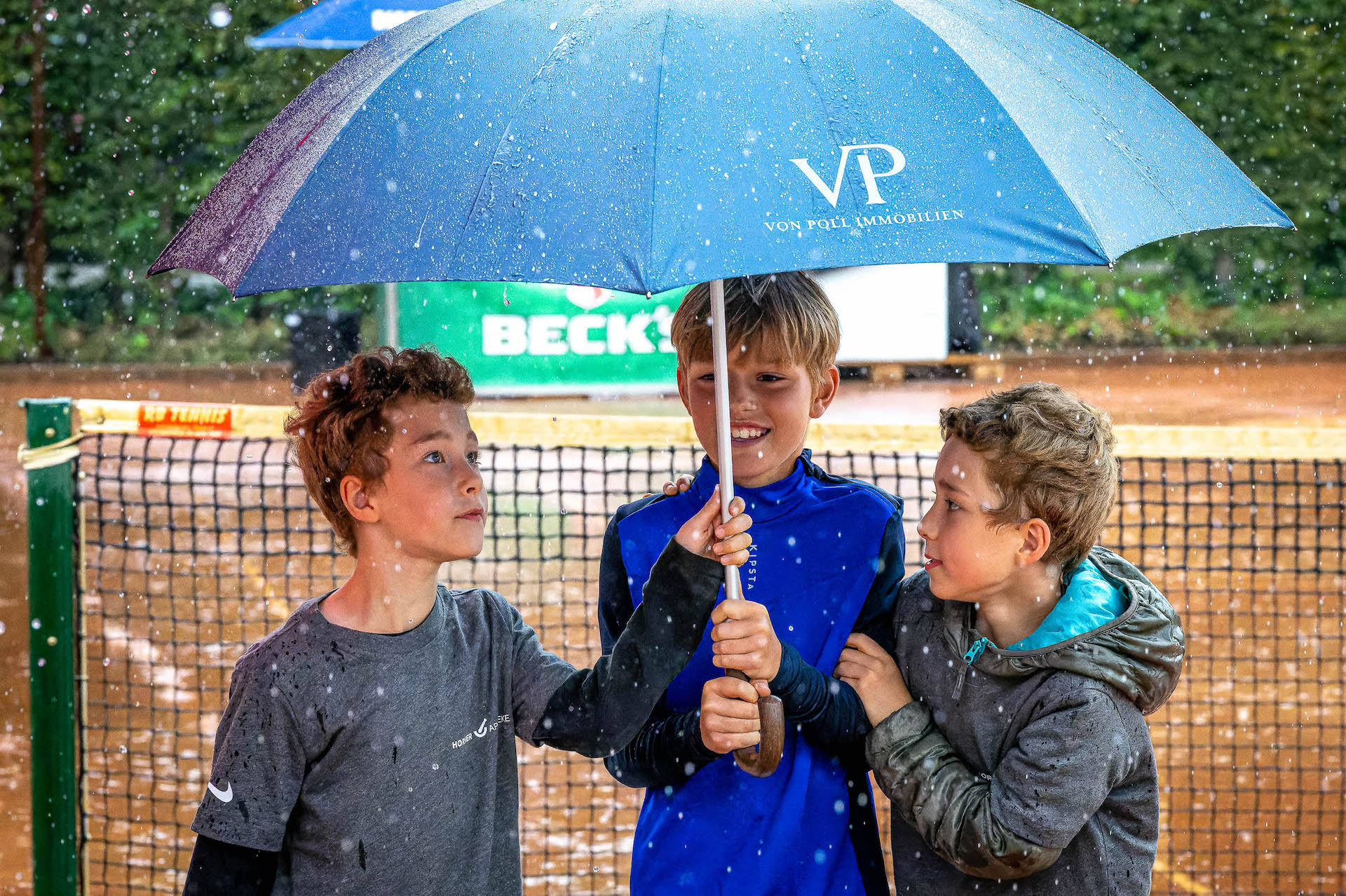 Dann kam der Regen und machte unsere Plätze unbespielbar. Aber dank der Hilfe vieler fleißiger Helfer und der Zusammenarbeit mit unserem Nachbarverein TV Werder haben wir 3 andere Außenplätze herrichten können. Der Oberschiedsrichter Edin Efendic gab grünes Licht. Weiter ging’s!