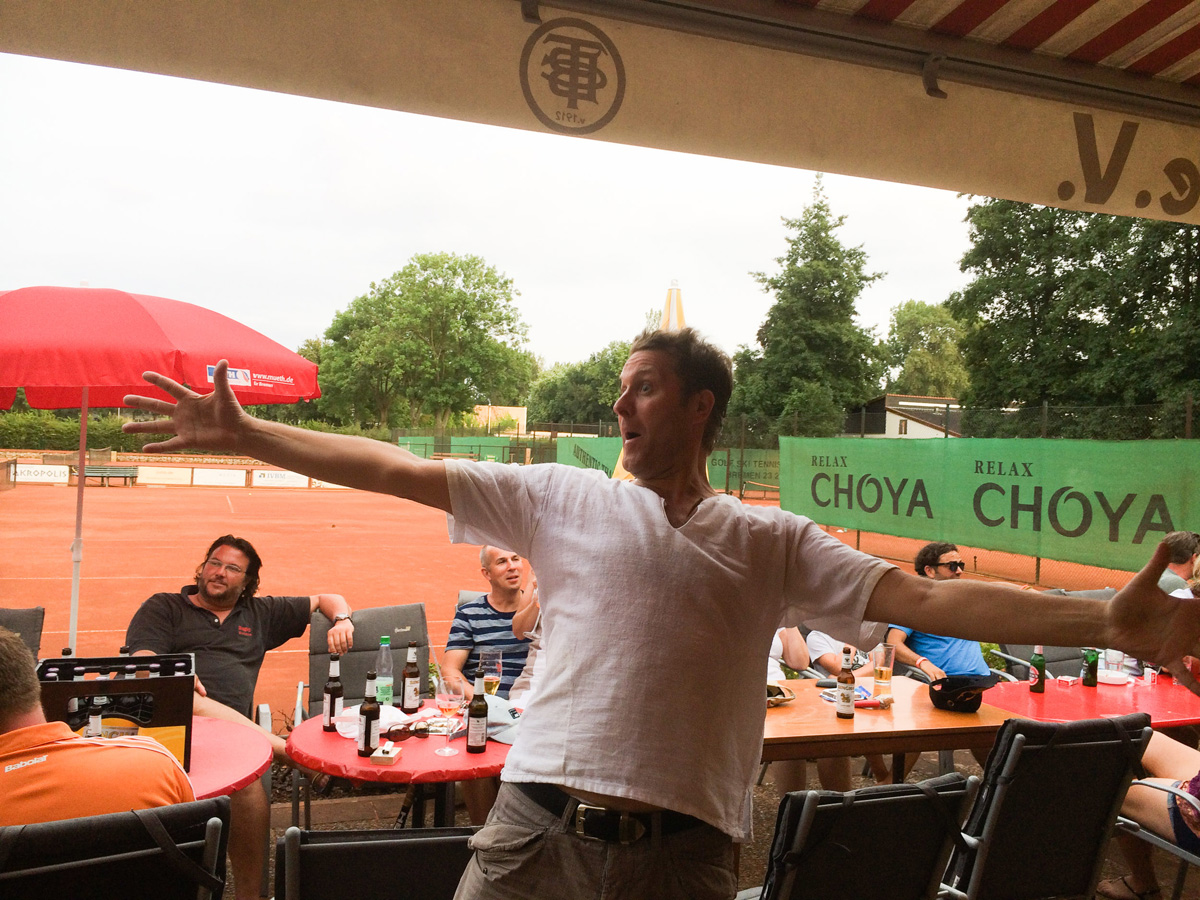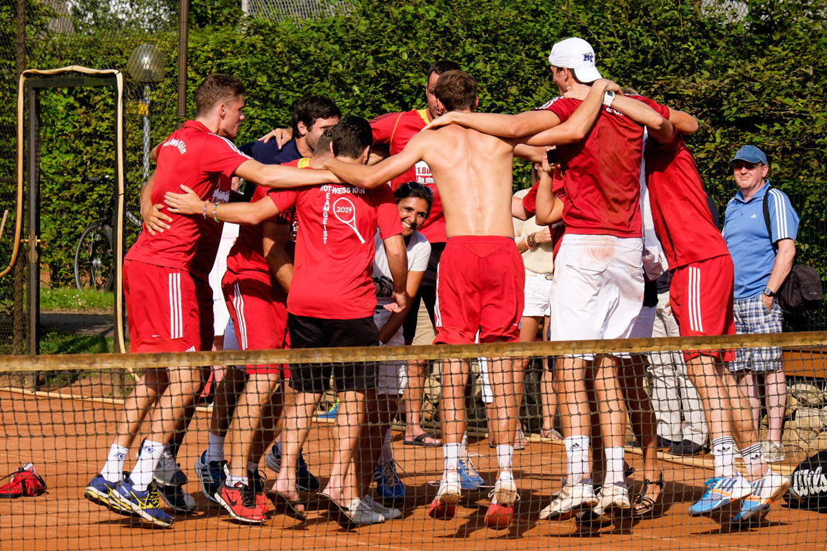 Durch eine tolle Mannschaftsleistung konnte der Tabellenführer und Aufsteiger in die 1. Bundesliga Rot-Weiß Köln sensationell mit 5:4 bezwungen werden. Trotz der insgesamt drei Siege in Punktspielen (insgesamt 6:8 Punkte) ist der Klassenerhalt leider noch unsicher. Erst in der nächsten Woche wird sich entscheiden, wer aus der 1. Bundesliga absteigen wird und damit ob wir in der 2. Bundesliga bleiben können.
