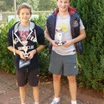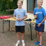 In der U10 spielten 8 Kinder mit viel Freude und Ehrgeiz gegeneinander. Obwohl sich Tom Hill in der Gruppenphase Julius Daum gegenüber geschlagen geben musste, konnte er ihn in einem spannenden Endspiel dann besiegen und sicherte sich damit den 1. Platz. Den dritten Platz erlangte Caspar Samii vor Vanessa Walter.