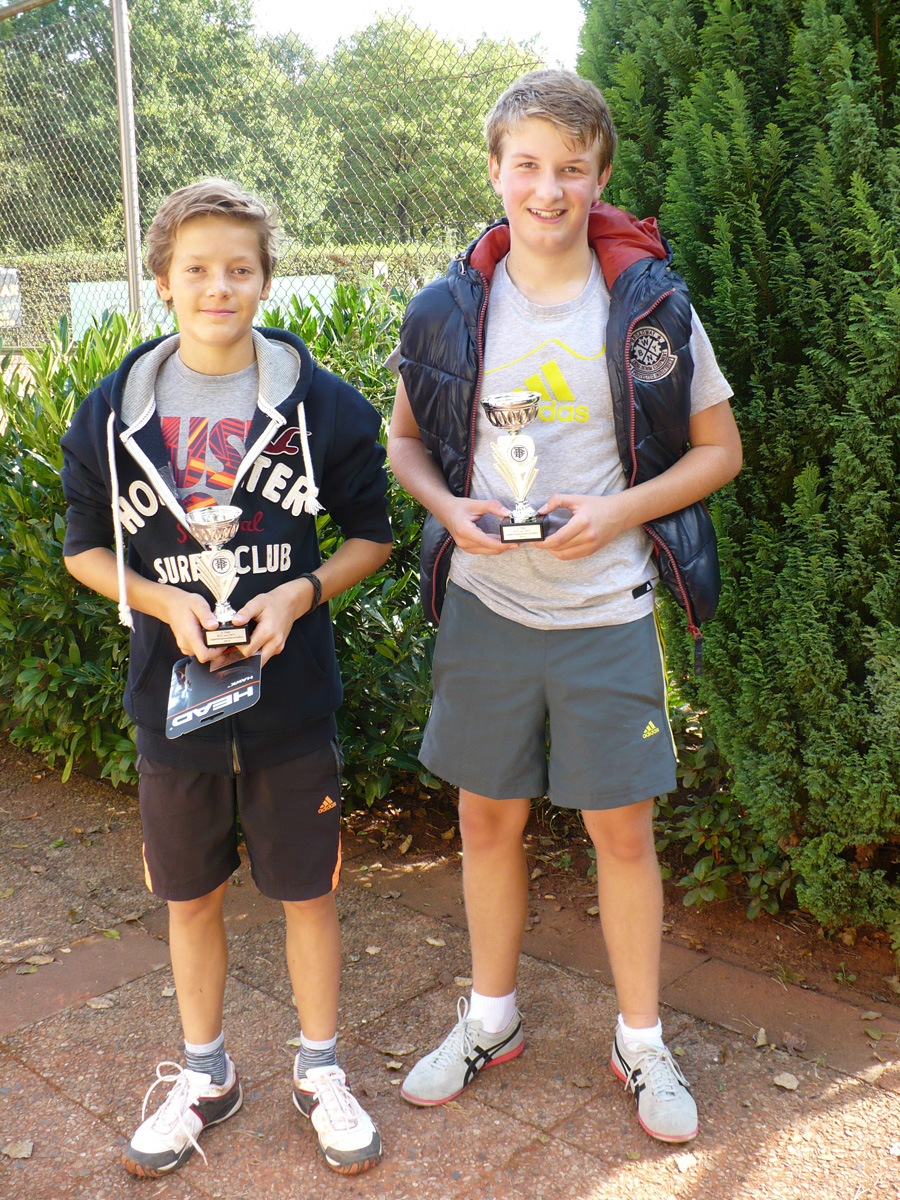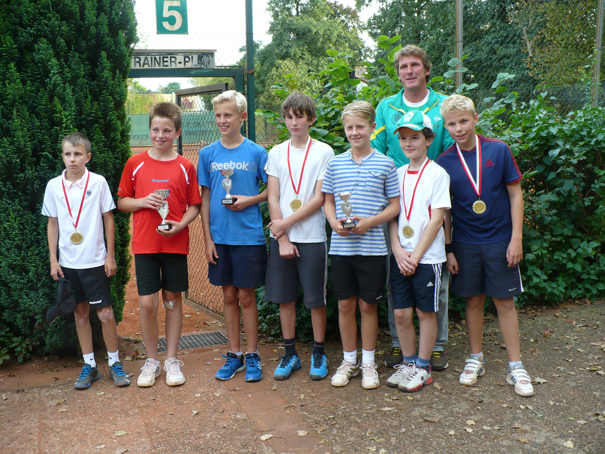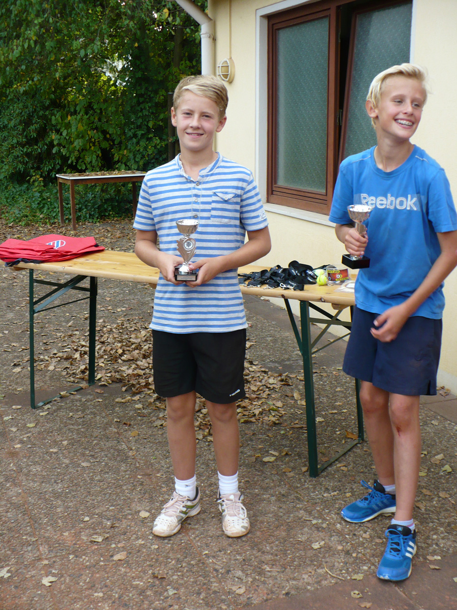 Besonders enge und spannende Matches lieferten sich alle 9 Jungs der U12. Erst nachdem jeder 6-7 meist hart umkämpfte Sätze gegen wechselnde Gegner gespielt hatte, standen die Platzierungen fest: 1. Steffen Eggers, 2. Enno Zimmermann, 3. Louis Sauer, 4. Jannik Lübke.