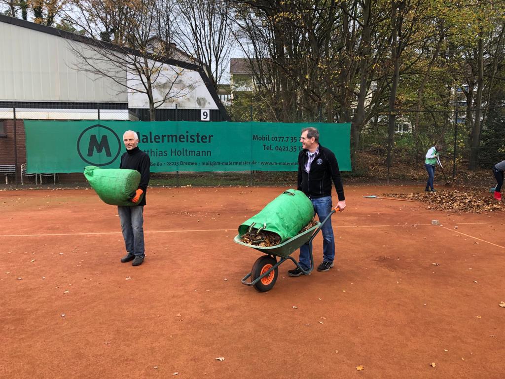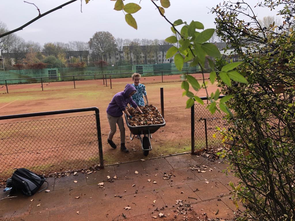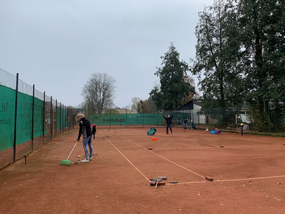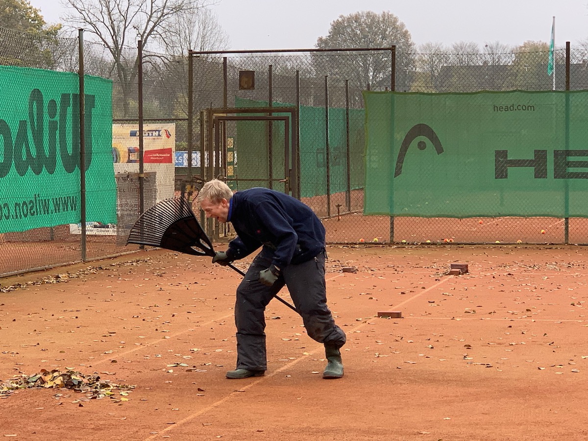 Seit vielen Jahren ist das gemeinsame Laubharken zum Ende des Jahres eine lieb gewonnene Tradition. Man trifft sich zum gemeinsamen Arbeiten – aber auch, um das (Tennis-)Jahr zu besprechen und zu diskutieren. Und dieses Mal gab es natürlich besonders viel zu erzählen.