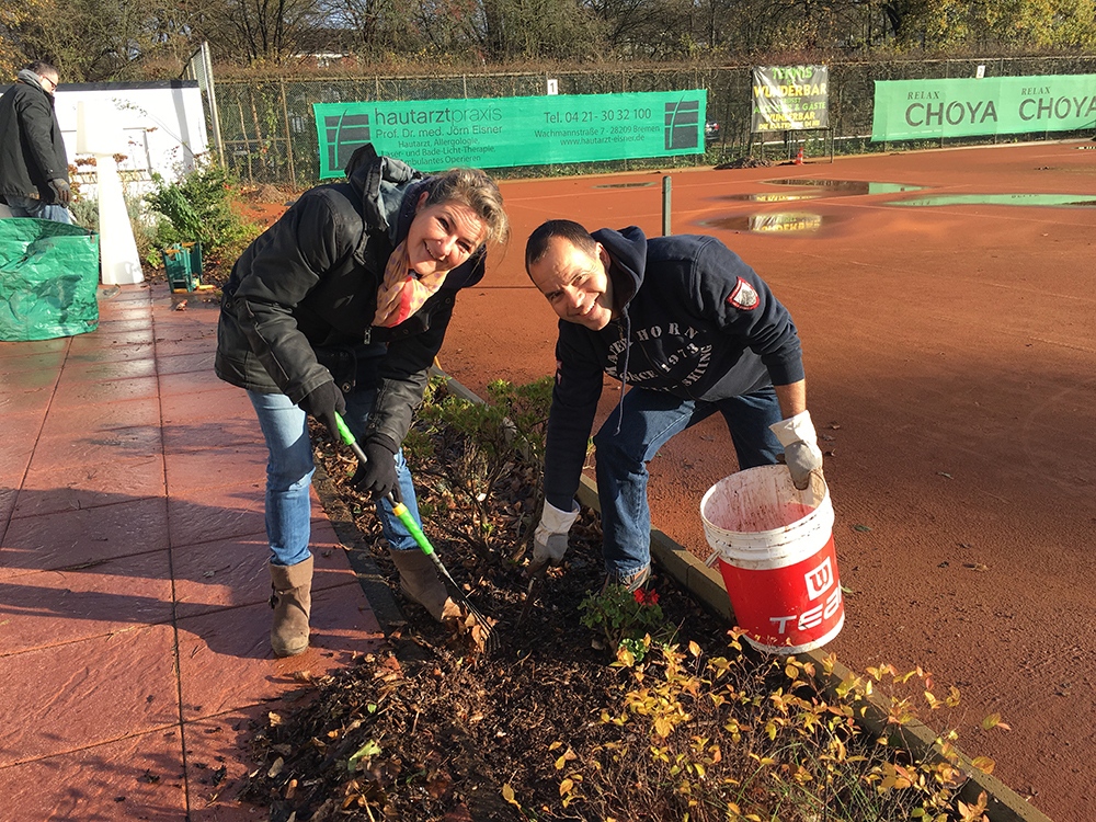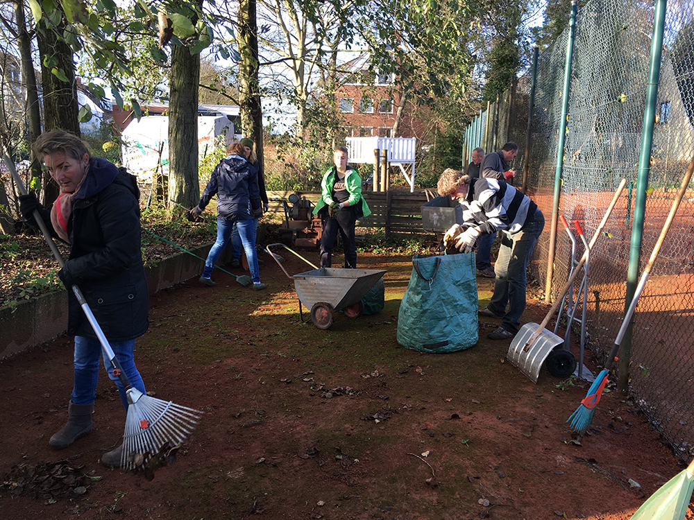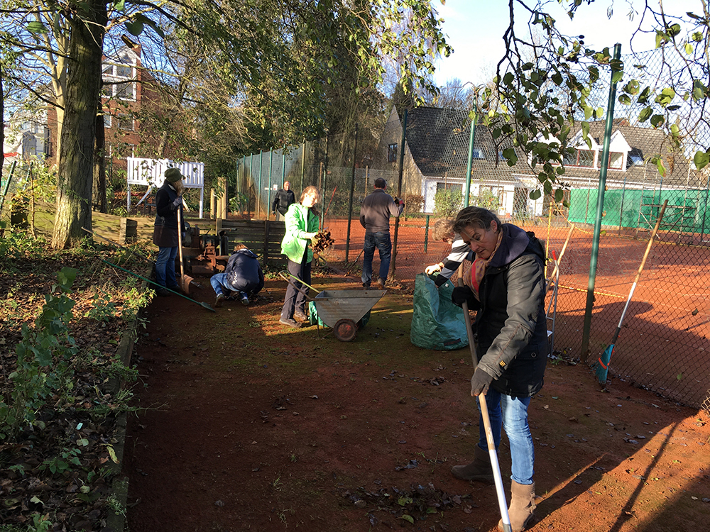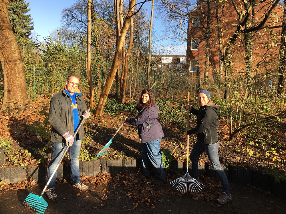 Der krönende Abschluss unserer Arbeitsdienste im Herbst ist traditionell das gemeinsame Laubharken Ende November. Auch in diesem Jahr haben sich wieder ca. 20 Leute angemeldet. Es wurden bei bestem Wetter ein großer Container mit Laub gefüllt, Beete von Unkraut befreit und einige andere kleinere Arbeiten erledigt.