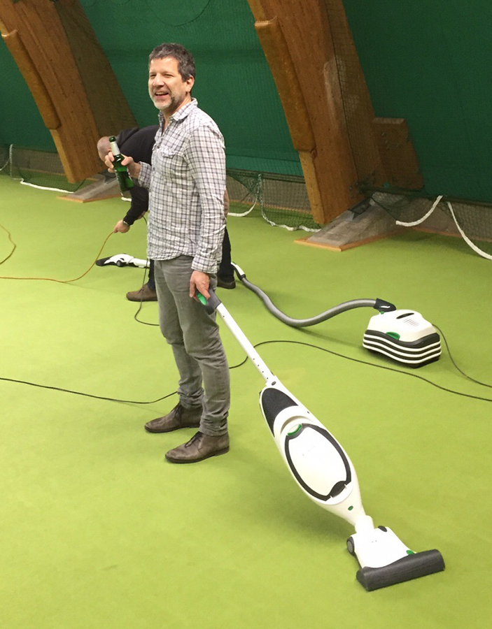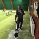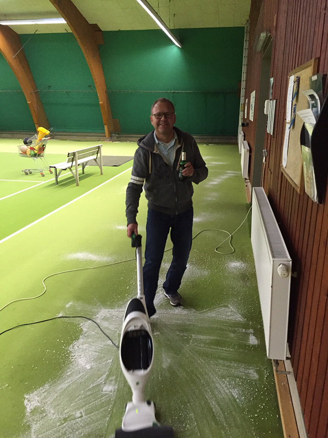 Der Teppich unserer Hallen wird zwar regelmäßig gereinigt, einige Verunreinigungen können aber von der normalen Reinigung nicht entfernt werden. Dies war einigen engagierten, ordnungsliebenden Mitgliedern ein Dorn im Auge; diesem Zustand musste also dringend abgeholfen werden.
