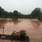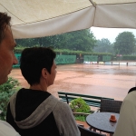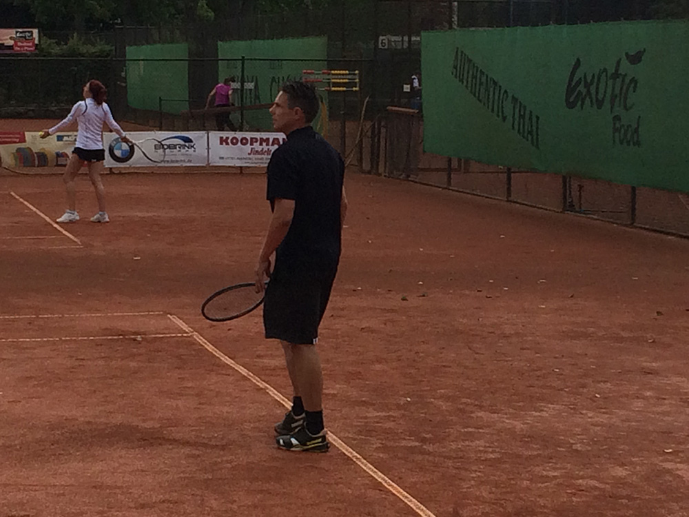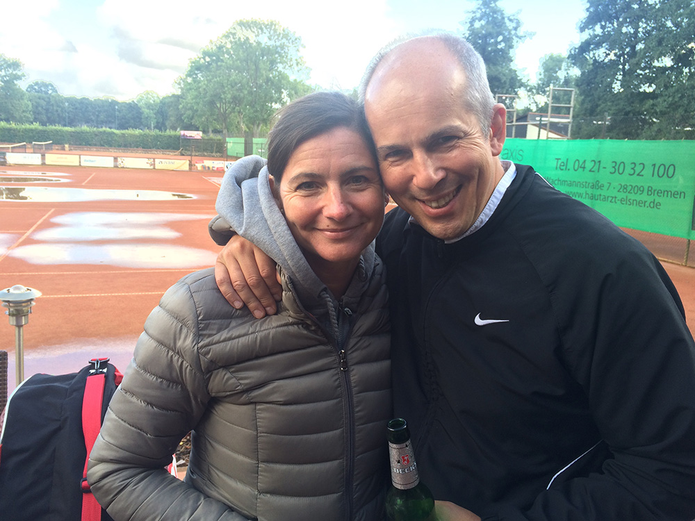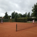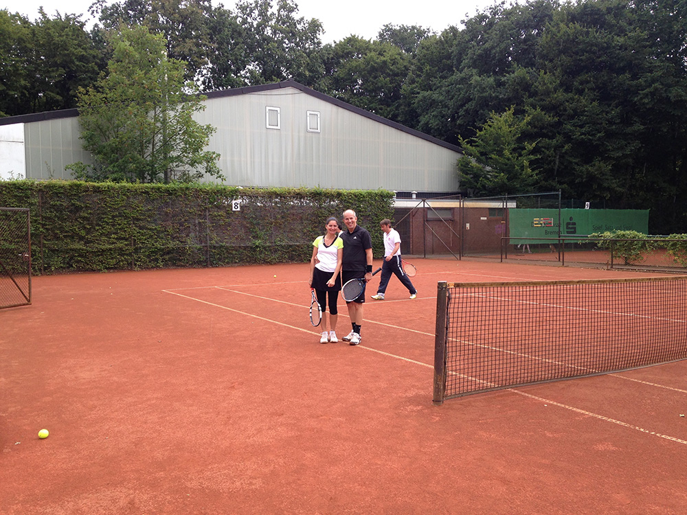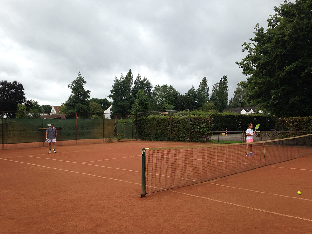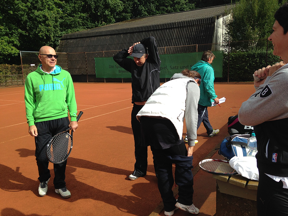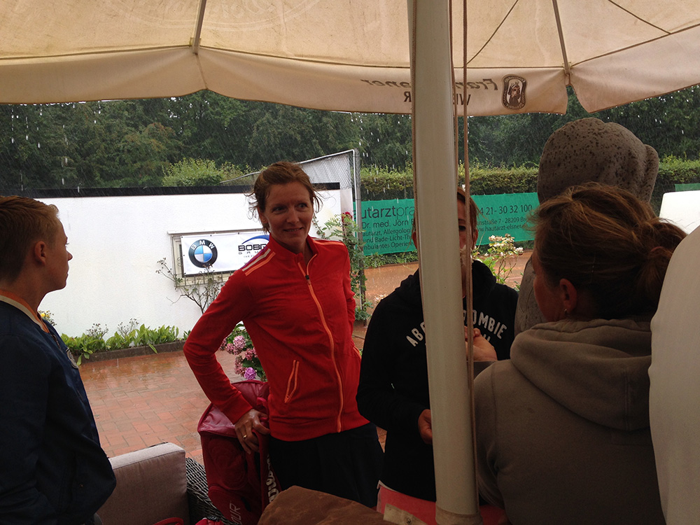 Bei gutem Wetter wurden auf acht Plätzen die ersten Matches gestartet. Leider machte uns nach kurzer Zeit das Wetter einen sehr dicken Strich durch die Rechnung: Die Plätze standen tief unter Wasser, so dass an ein Spielen auf den Außenplätzen nicht mehr zu denken war. Also ab in die Halle, was in Anbetracht der vielen Teilnehmer natürlich nicht einfach war.