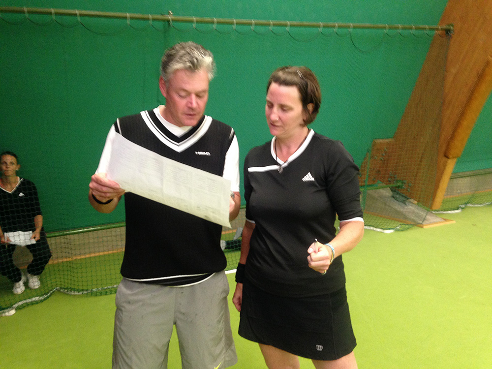 Endlich war es soweit: Zum ersten Teil des Mixed-Turniers hatten sich 22 Paarungen angemeldet und es waren (fast) alle pünktlich zum Sign-in um 10 Uhr im Club. Die souveränen Turnierleiter Isi und Frank stellten im Nu einen Spielplan mit vier Gruppen zusammen, der auch sofort in Angriff genommen wurde.