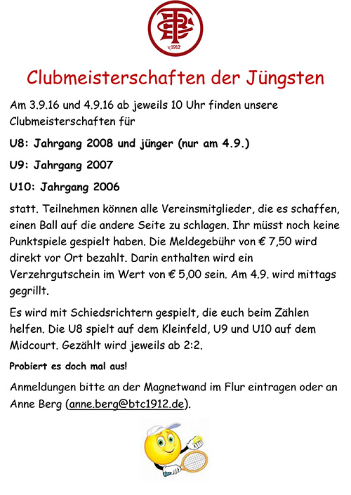 Am 3. und 4. September finden die diesjährigen Clubmeisterschaften der Altersklassen U8, U9 und U10 [...]