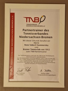 Unser Trainer René Voboril Hammersley ist Mitte Februar zum Partnertrainer des Tennisverbandes Niedersachsen-Bremen ernannt worden.