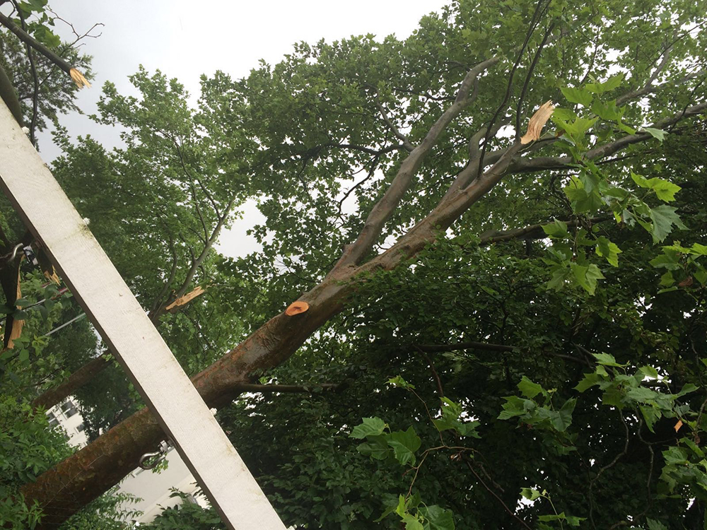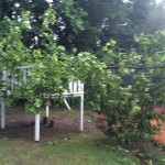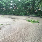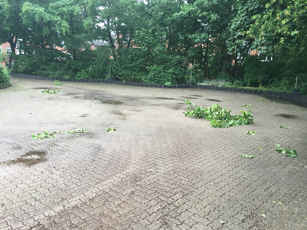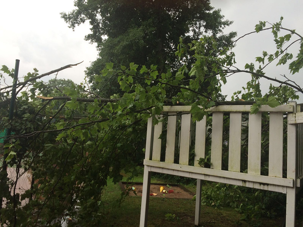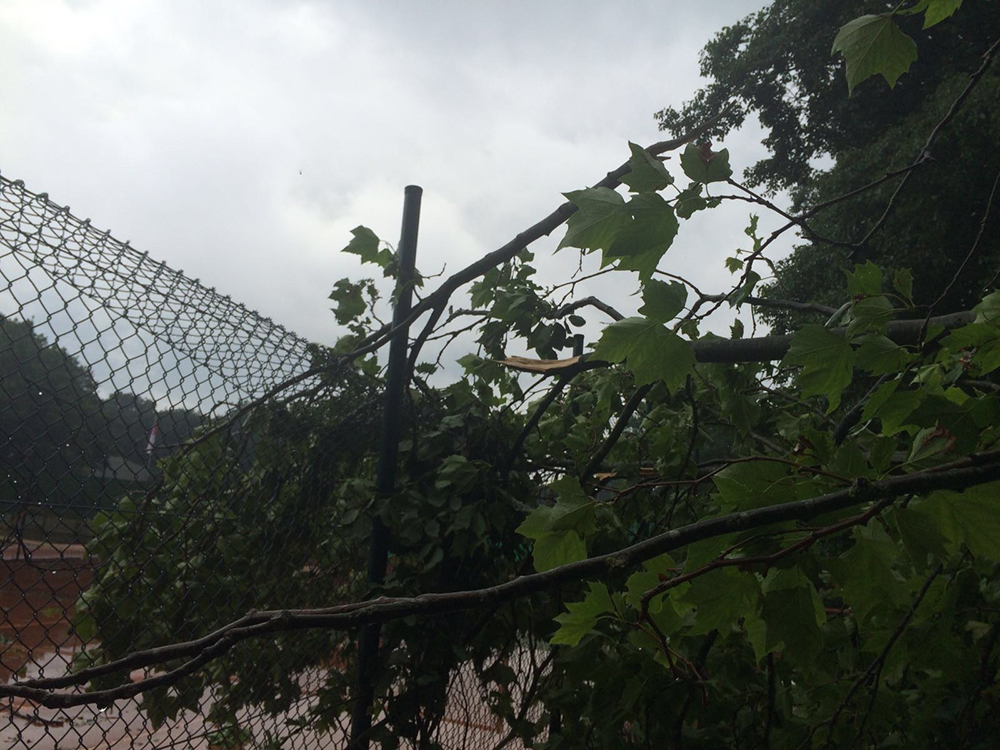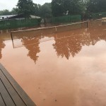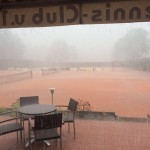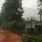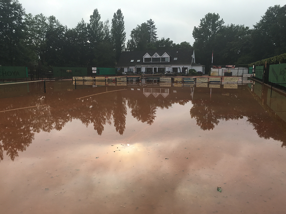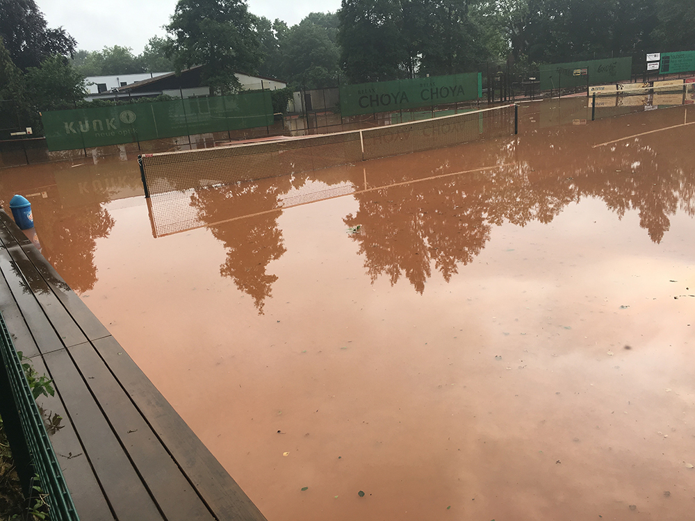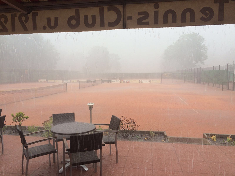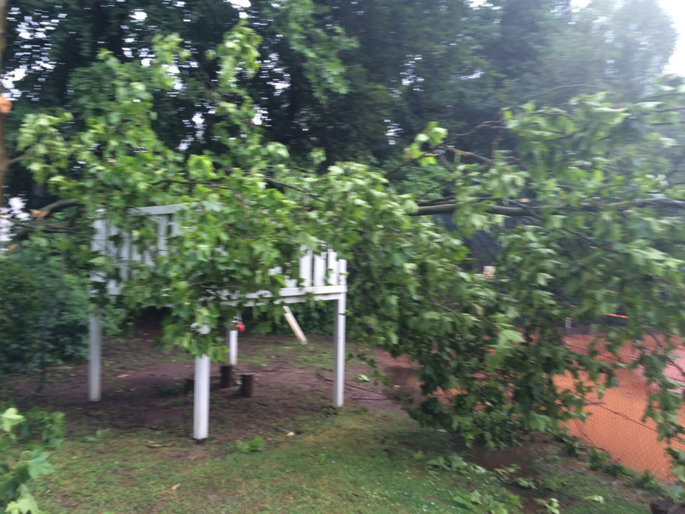 Extrem starke Regenfälle und Windböen haben einige Bäume umstürzen lassen. So ist der Zaun von Platz 5 stark beschädigt worden. Einige Plätze standen knöcheltief unter Wasser. Ob die Halle in Mitleidenschaft gezogen wurde, muss noch geklärt werden.