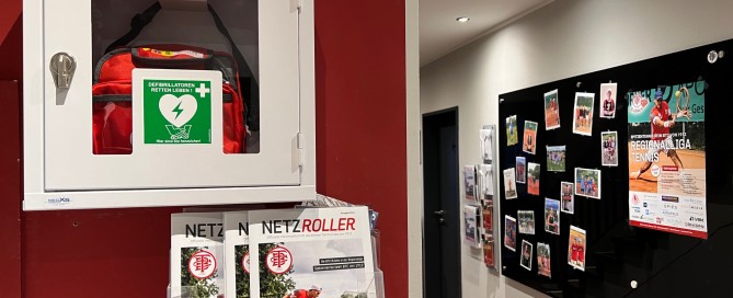 Wie jedes Jahr befindet sich der Defibrillator während der Sommersaison in unserem Clubhaus unten im Flur hinter der Treppe (Nähe Herrenumkleide / Damentoilette).